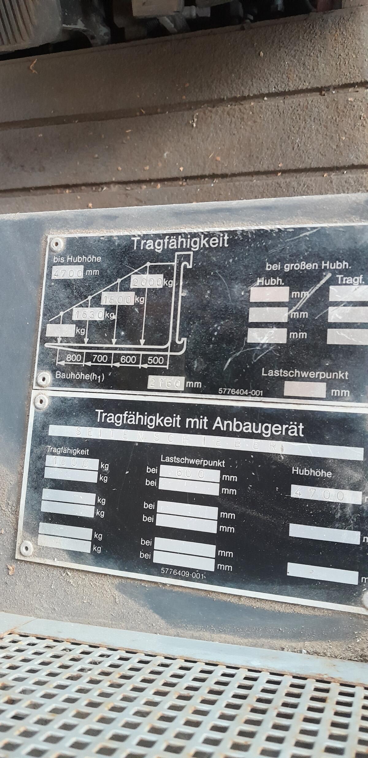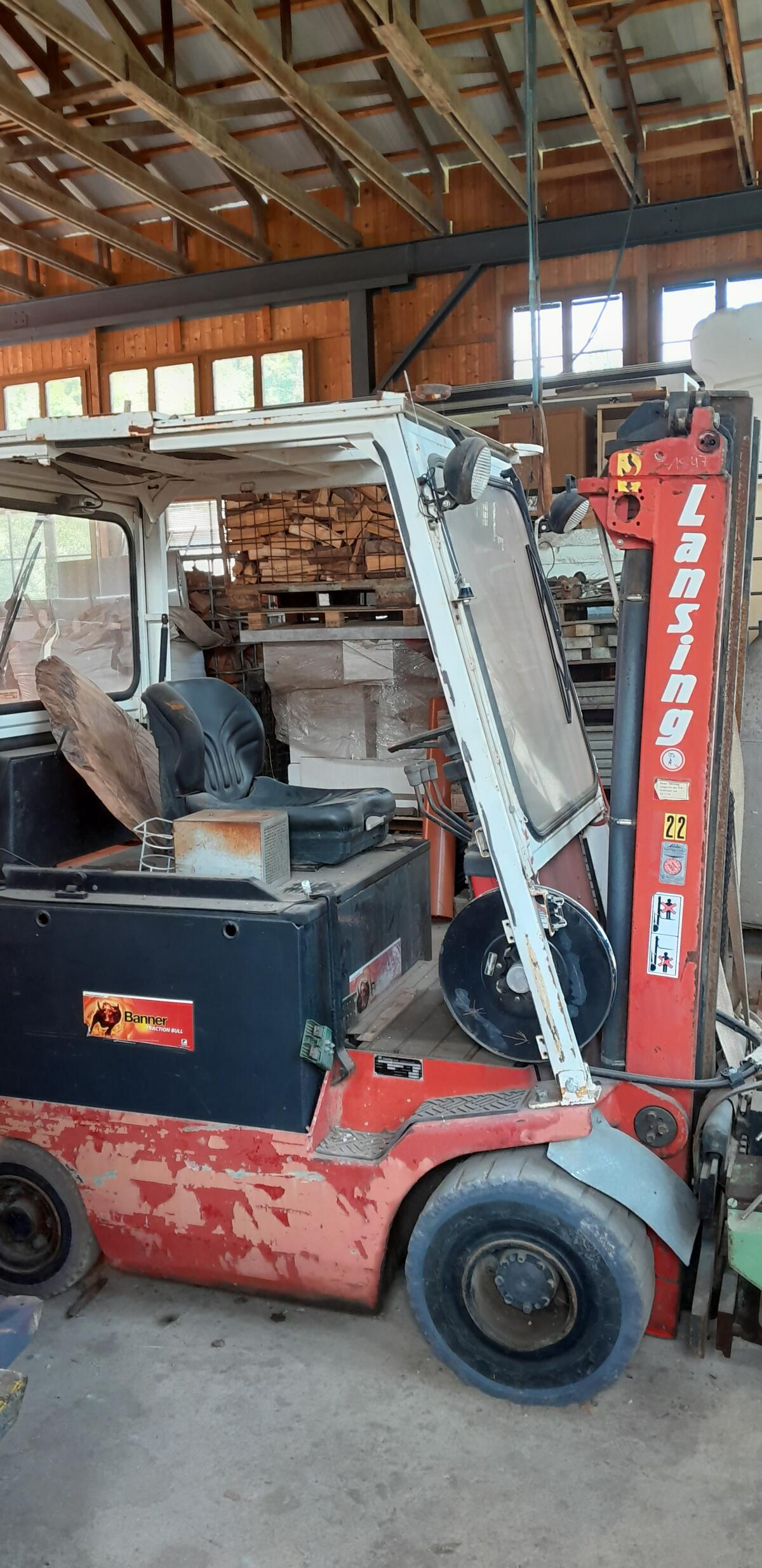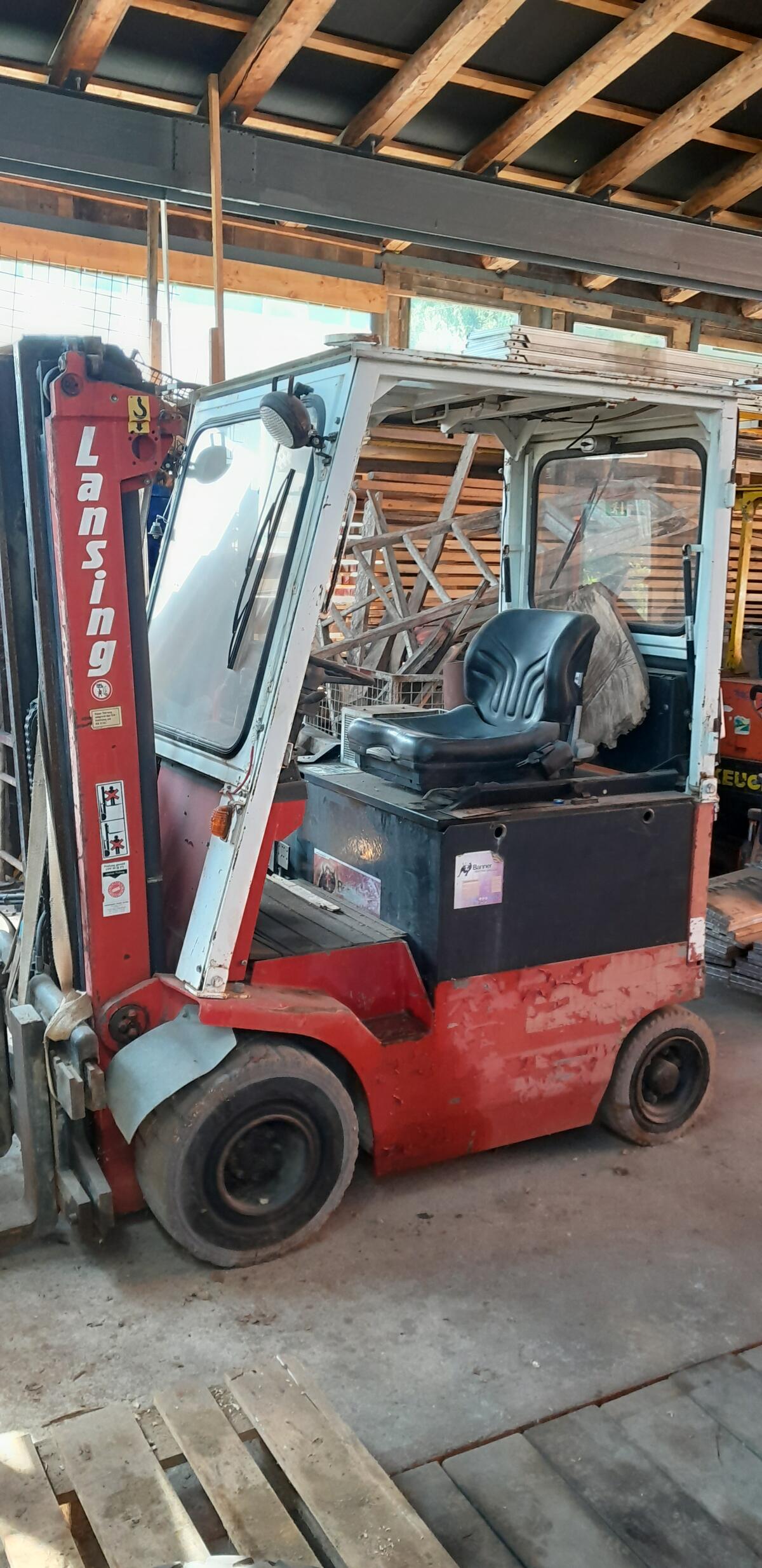 Elektro Stapler Lansing, Bj. 1988. Betriebsstunden: 7.881h. Tragfähigkeit: 2.000 kg bei 500 mm Lastschwerpunkt. Eigengewicht ohne Batterie: 3.167 kg, Batteriegewicht: 1.234 kg.