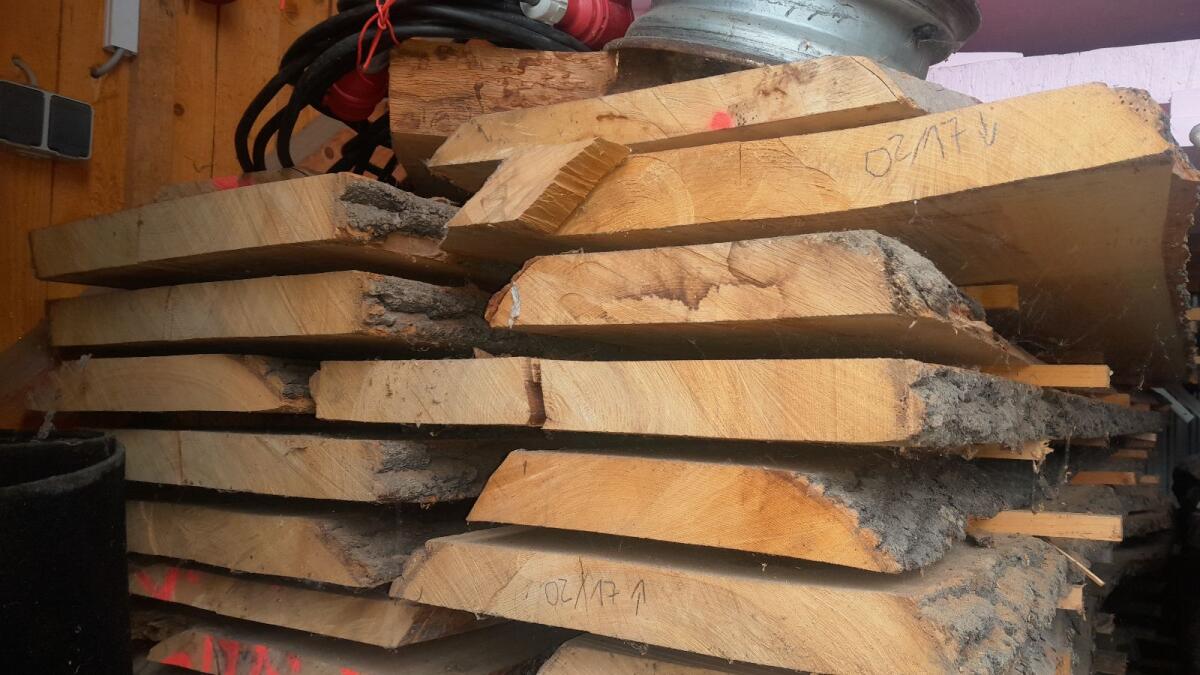 Eingesägt 02/17. Trocken eingelagert, 4m lang, 55 mm stark, 12 Stück. 2 x 5m lang, 55 mm stark [ als Wange). m³ ≠ 650€