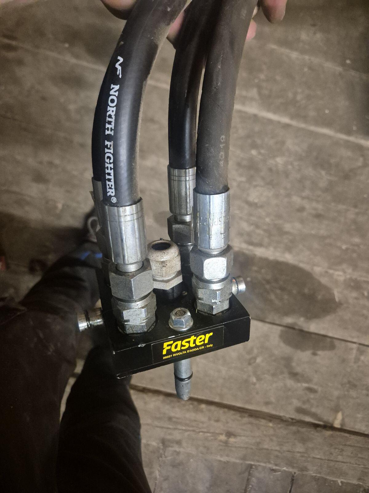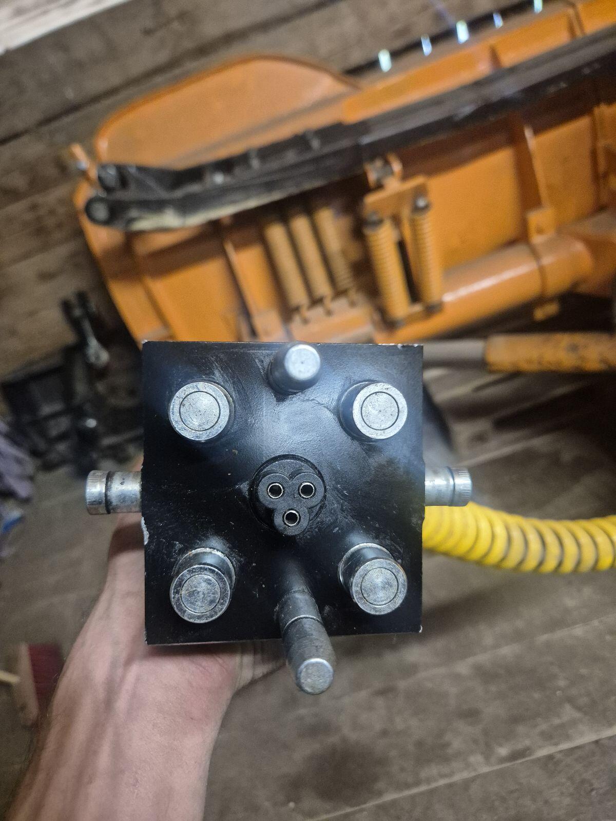 Faster Schnellkuppler, neuwertig, 4x 1/2" Anschlüsse, inkl. 3-poliger Elektrostecker für Magnetventile, wurde auf einem Schneepflug montiert. 1x gekuppelt (kein Schnee). Neupreis € 348,90,-.