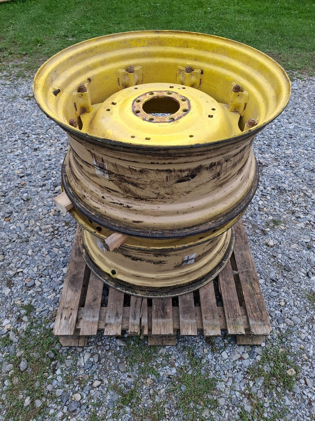 Verkaufe 2 Stk. Felgen, 34 Zoll. Waren auf einem John Deere 5R montiert. Eine Felge hat einen leichten Schlag. Können auch als Kompletträder erworben werden.
