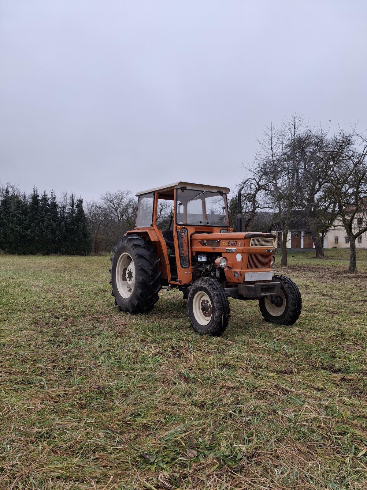 Traktor Fiat 640, Bj. 1979, 5.847 Bstd., ändern sich noch geringfügig. Bremse neu, hintere Endantriebe neu gelagert und abgedichtet. Hydraulik abgedichtet, ein dw Stg. Alle Filter und Öle neu, Starter und Wasserpumpe neu. Neue Begrenzungslichter dabei. Türen vorhanden, Originalsitz vorhanden. Hydraulische Lenkung, diverse Fachbücher dabei, Ackerschiene und hydr. Oberlenker.