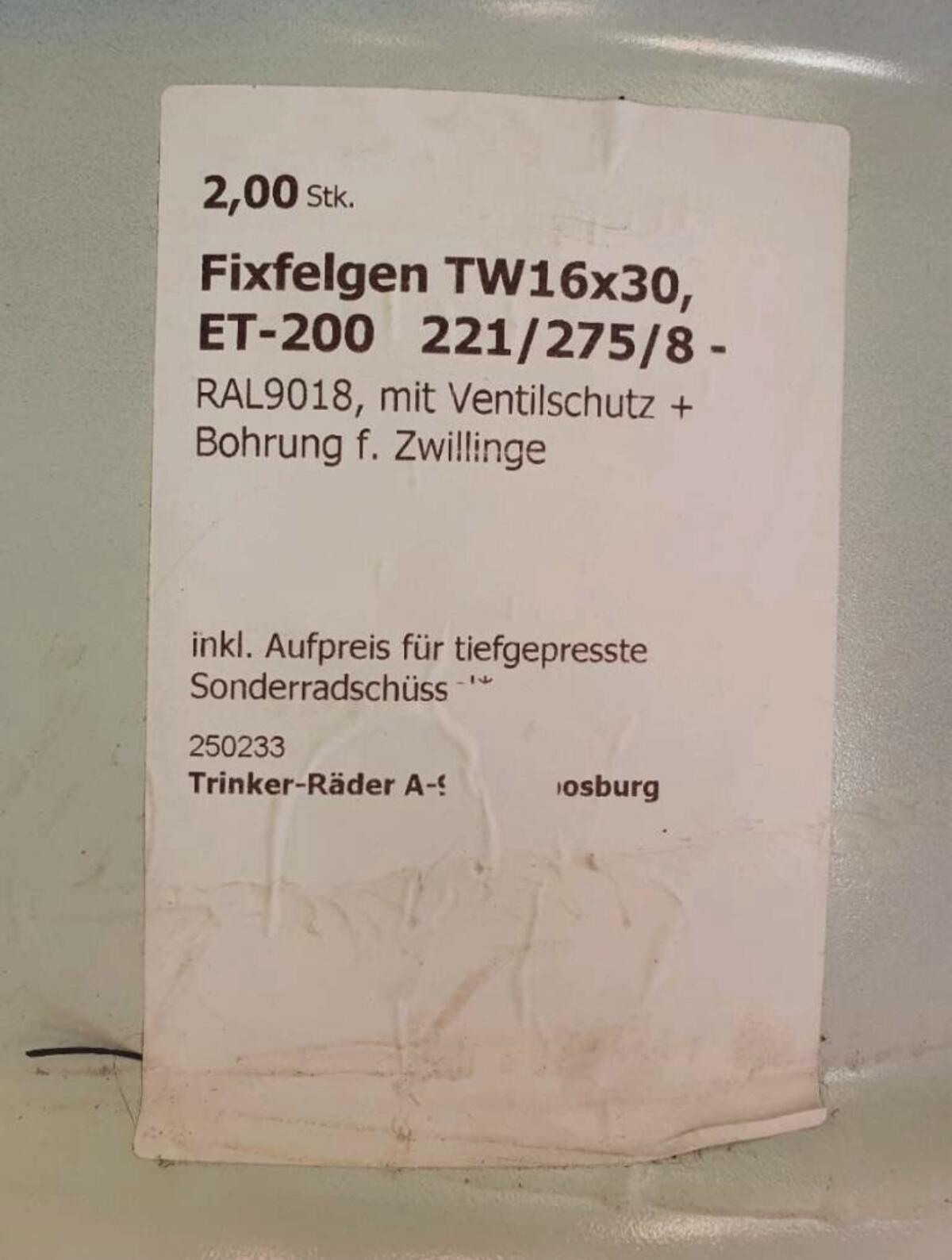 2 Stk. Trinker Traktorfelgen 16x30 ET-200, Innendurchmesser 221 mm, Lochkreis 275 mm x 8. Waren auf einem Lindner Lintrac 90 montiert.