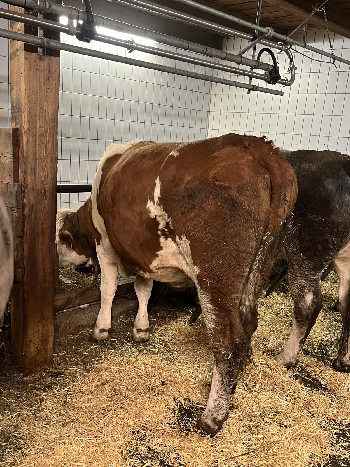 Verkaufen Fleckviehkalbin Nelli, geb. 26.01.2024, genetisch hornlos. Kann jederzeit besichtigt werden.