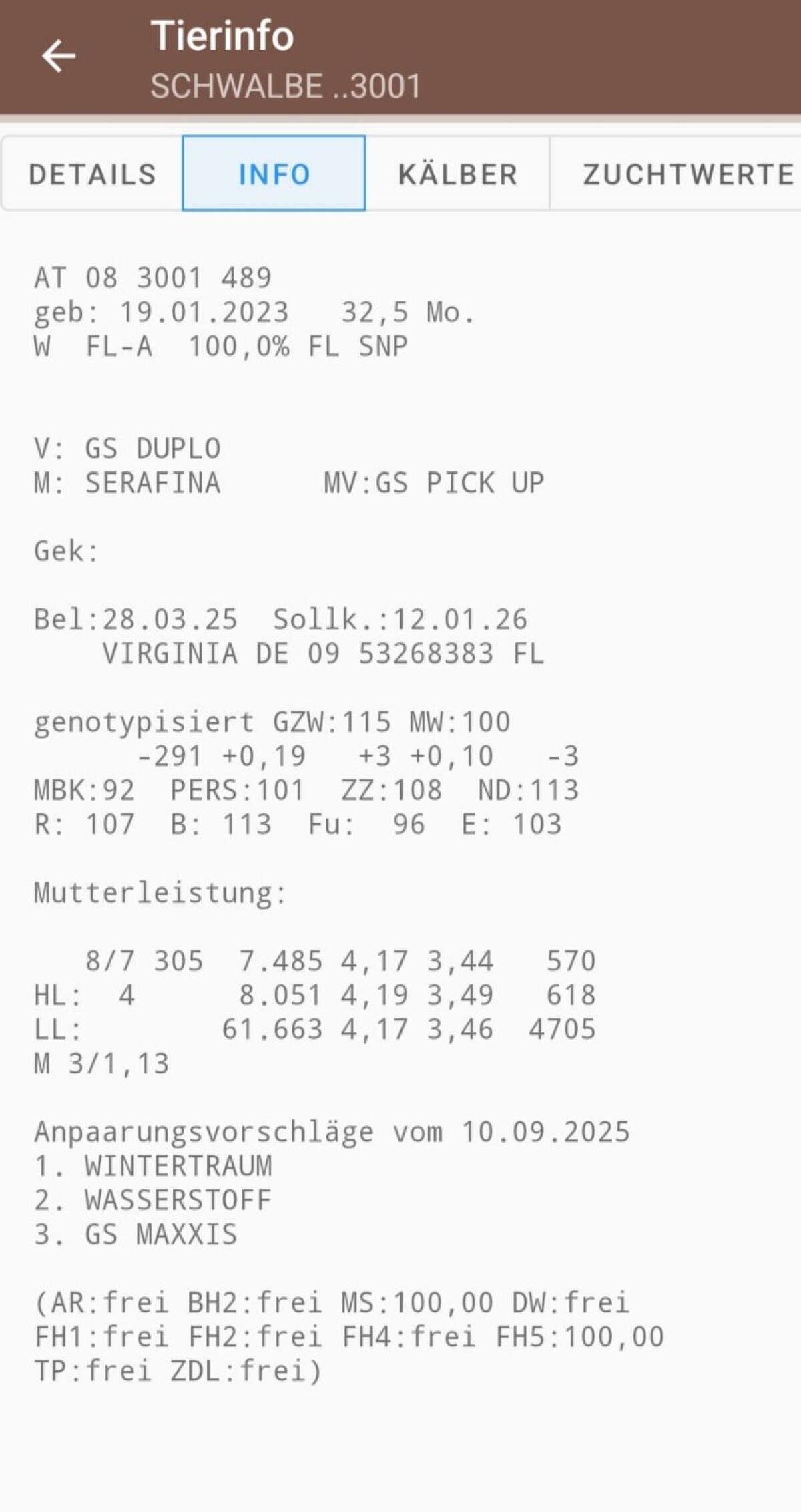 Fleckvieh Kalbin 'Schwalbe' trächtig