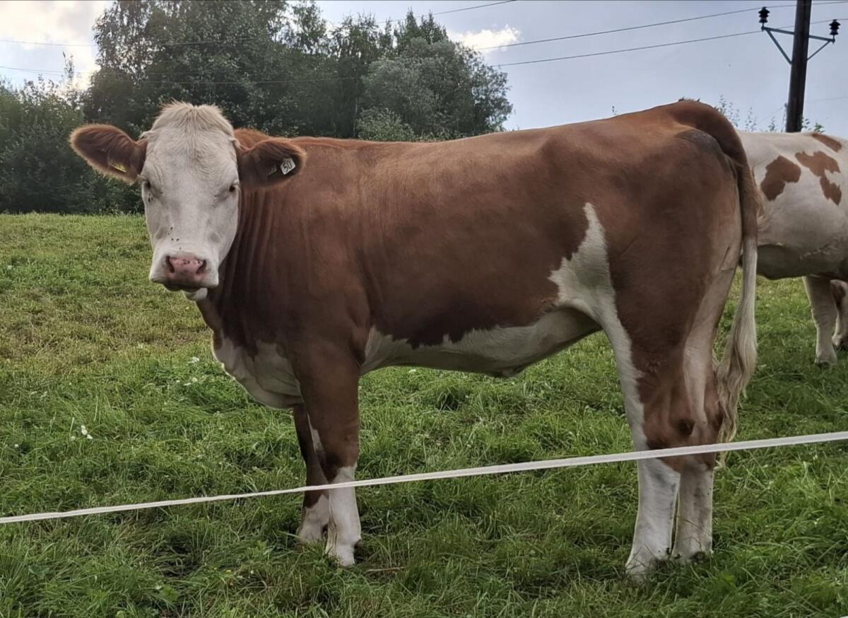 Verkaufe trächtige FV Kalbin 'Schwalbe', Anbindehaltung, sehr umgänglich, Weide.