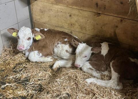 Verkaufe Fleckvieh Kuhkalb mit Leistungsnachweis, Zwillingskalb (beide weiblich), Bio, geboren am 25.10.2025.