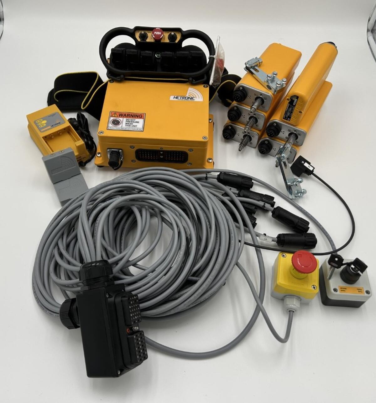 Funknachrüst-Set von Hetronic für Kräne, Winden, Traktoren, Rückewagen, Hecklader und hydr. gesteuerte Maschinen uvm. Kein Tausch des Hydraulikblocks notwendig. Das vorhandene Handsteuerventil kann bestehen bleiben. Keine Veränderung der Maschine - keine neue Abnahme notwendig. Optional mit Grafikdisplay, individuell konfigurierbar, schnelle und einfache Montage für eine sichere, flexible Funkfernsteuerungslösung, die für jede hydr. Anwendung geeignet ist. Set beinhaltet: Sender, Empfänger, Stellmotor, Verkabelung. Zubehör: Akku, Schelle usw. Der Hydraulikblock ist nicht im Set enthalten und wird auch nicht benötigt. (Dient als Symbolbild). Wir freuen uns auf Ihre Anfrage.