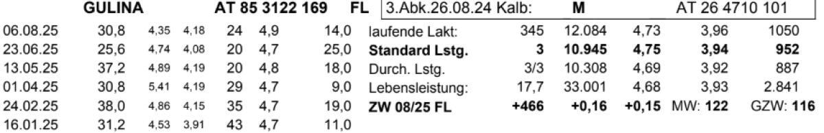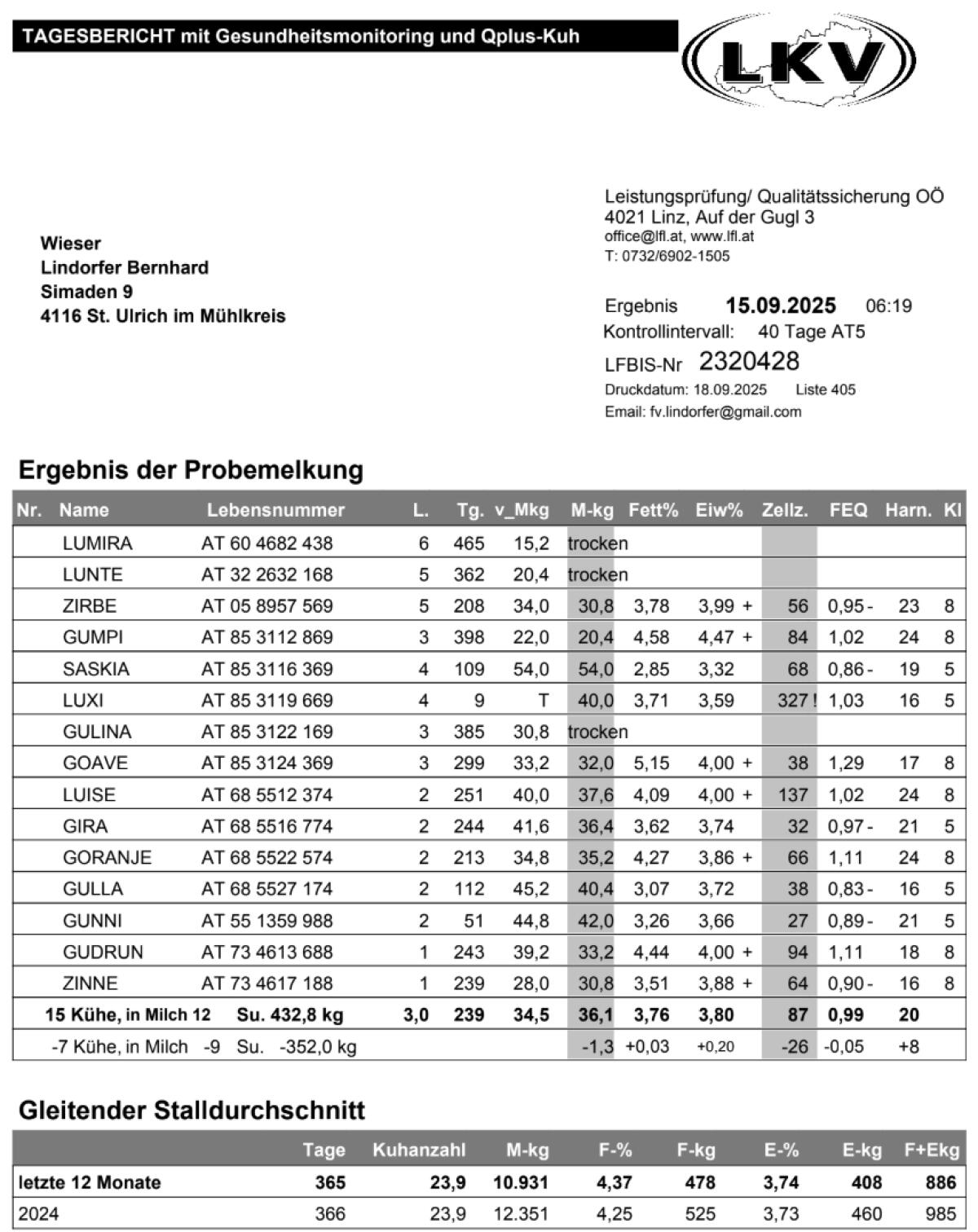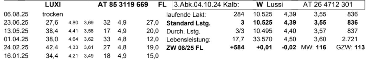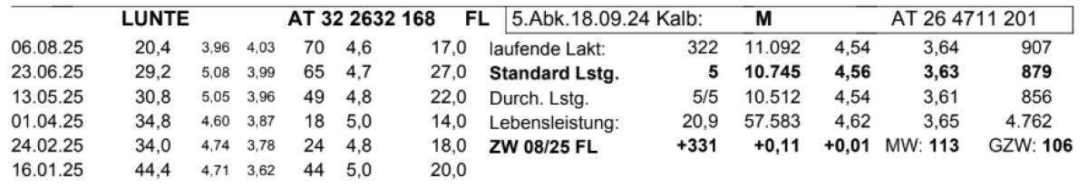 7 Milchkühe sind noch aufgrund einer Bestandesauflösung mit Anf. November abzugeben. Die Leistungsdaten (letzter Quartalsbericht) sind in den Fotos. Die Kühe sind es gewohnt, sowohl angehängt, als auch im Laufstall zu sein. Preise: für Zinne, Goranje, Gulina und Goave jeweils € 3.000,- / für Luxi, Zirbe, Lunte jeweils € 2.500,-. Eine Besichtigung ist natürlich möglich. Sollten die Kühe bis Mitte Oktober nicht verkauft sein, werden diese zur Versteigerung angemeldet.