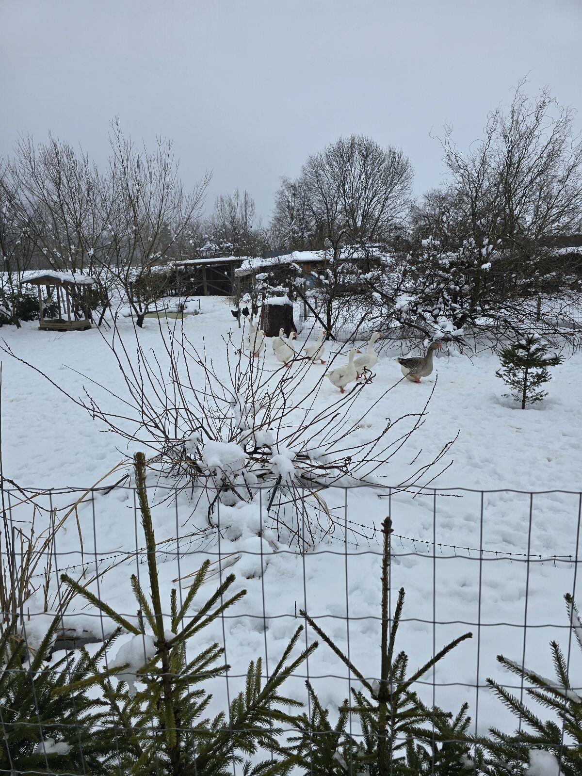 Gänseeier von weißer Landgans und Graugans verfügbar, Gänse laufen zusammen in einem Gehege, Preis pro Ei € 6,50,-, Versand versichert innerhalb Österreich € 10,-.