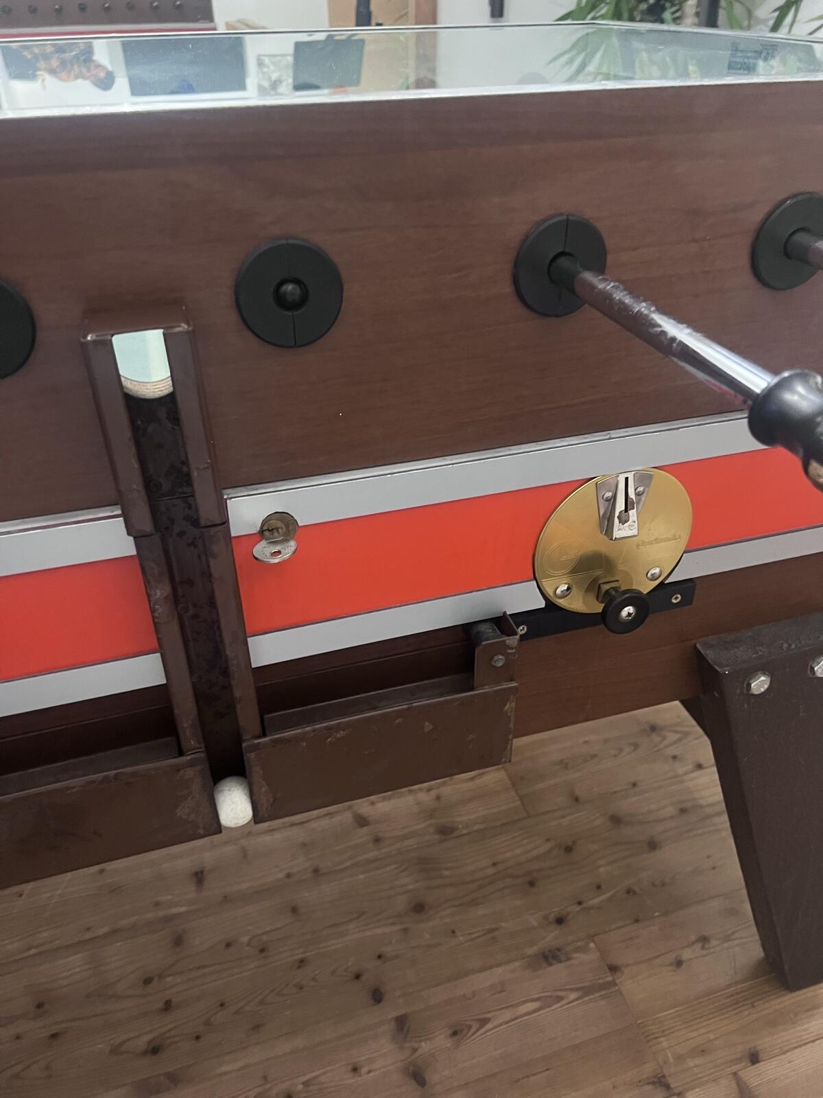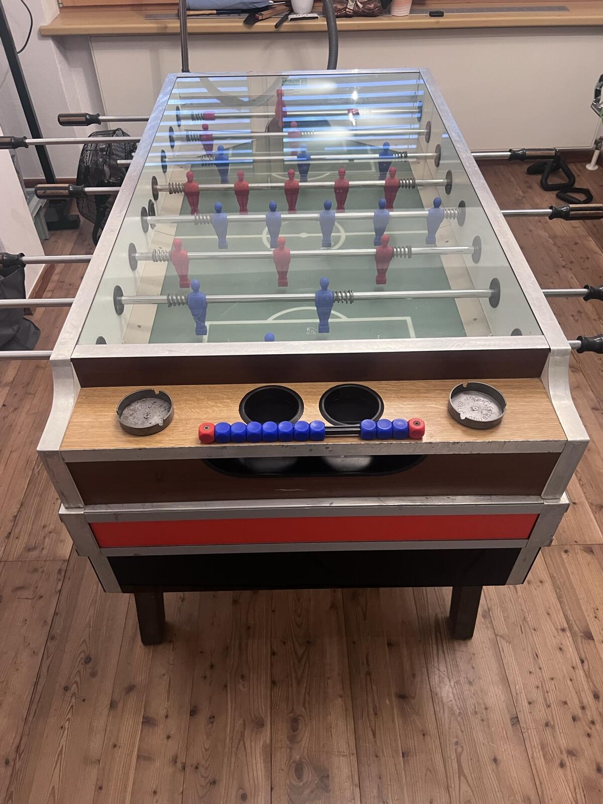 Garlando Tischfußball mit Glasspielfeld und Münzeinwurf.