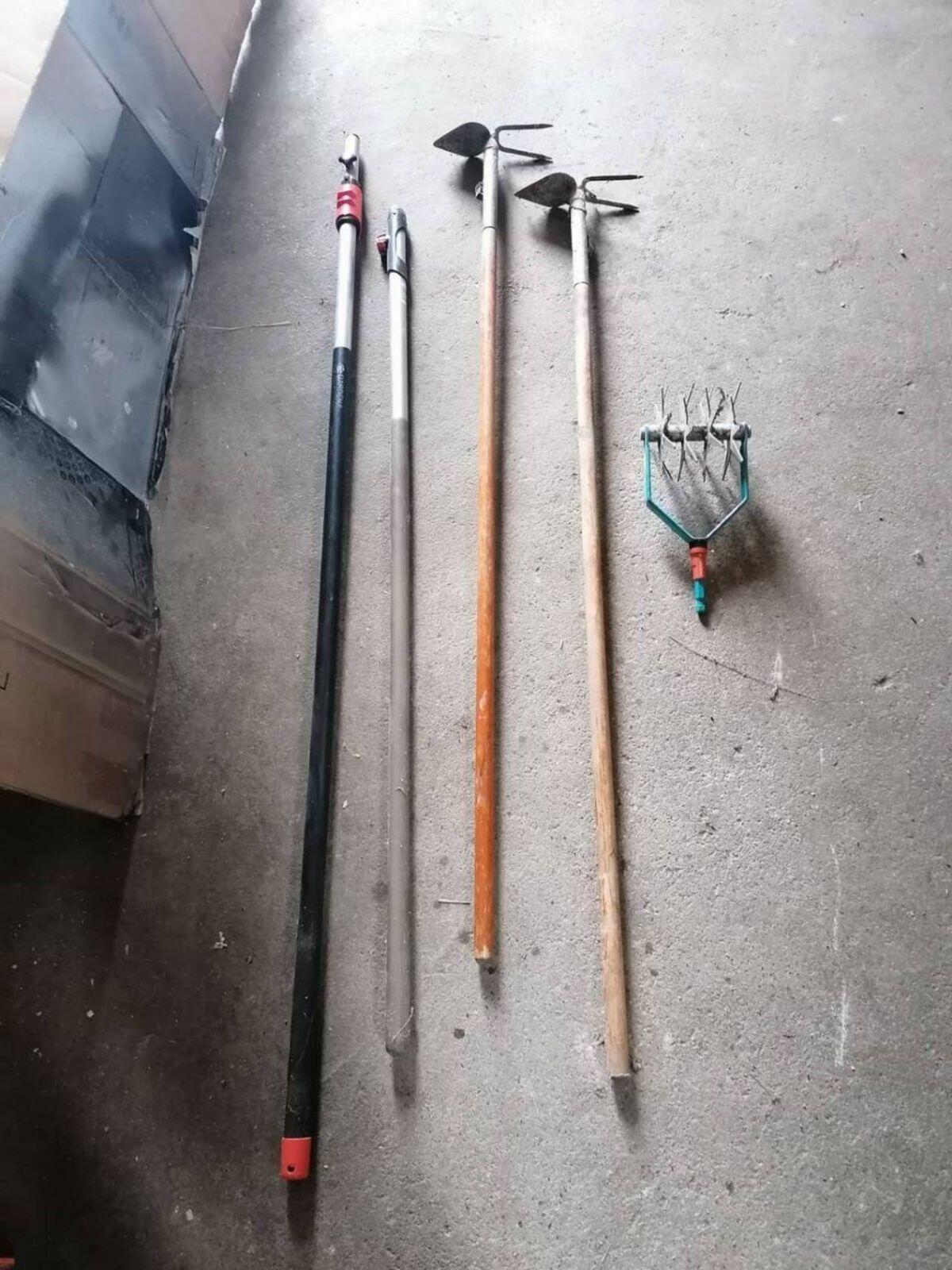 Kultivator, Gruber € 15,-, Gartenhacke je € 15,-, Verstellbesen € 25,-, Stiel € 20,-.