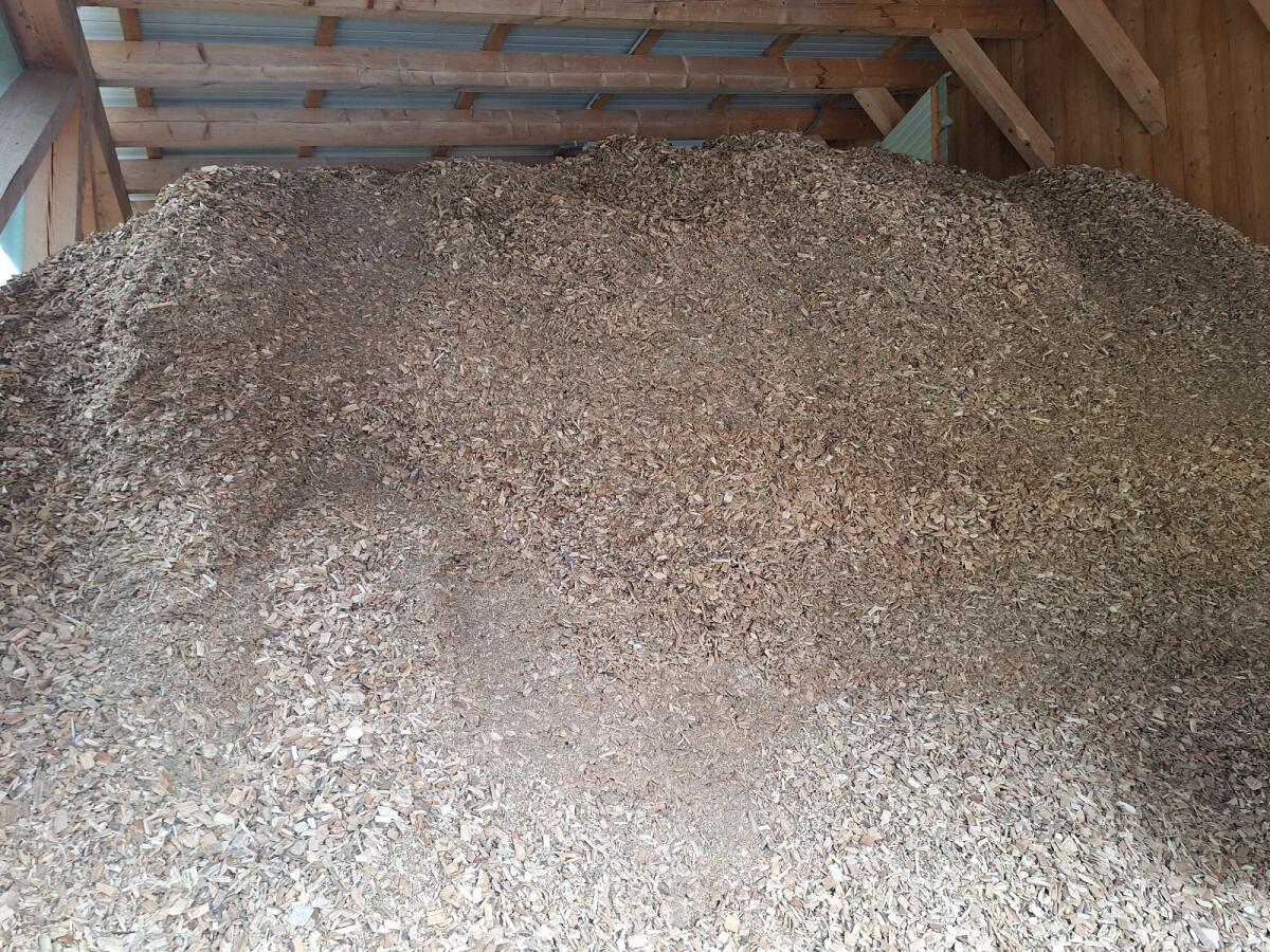 Trockenes, erstklassiges Hackgut G 30, hallengelagert, Hartholzanteil über 90 %, Preis pro Schüttraummeter, gesamt ca. 60 m³.
