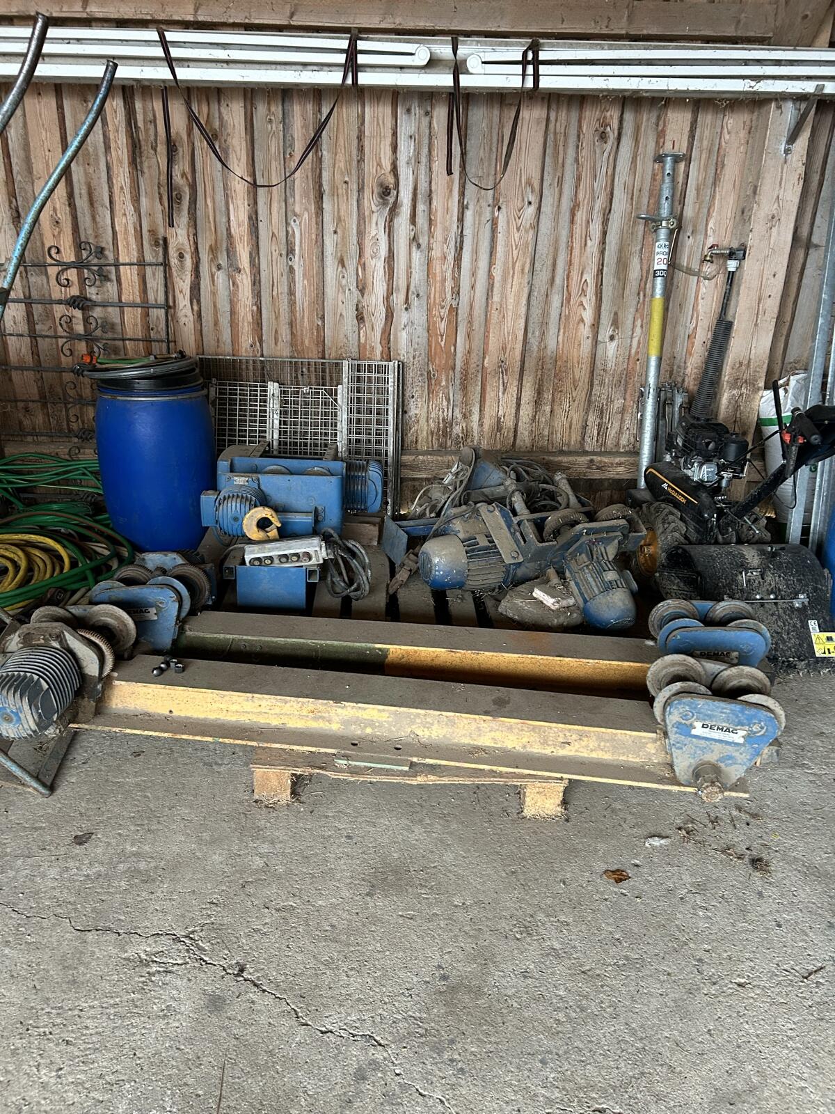Hallenkranwinde mit 1,6 t Hubkraft inkl. Seitenlaufwerk. Ohne Garantie, Gewährleistung und kein Rückgaberecht. Träger für die Laufkatze ist nicht vorhanden.