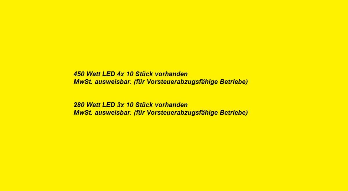 Die Tage am Hof werden wieder länger und das nötige Licht fehlt. Wir haben das richtige Licht für Ihre Werkstatt, Halle, Lager usw. Technische Daten: 450 Watt LED, 75.000 Lumen, Aludruckgussgehäuse mit Kühlrippen, 120° Duroplex Abstrahlwinkel, 230 V Stromversorgung, Antiflimmer. Preis: € 85,- netto pro Strahler. Technische Daten: 280 Watt LED, 45.000 Lumen, Aludruckgussgehäuse mit Kühlrippen, 120° Duroplex Abstrahlwinkel, 230 V Stromversorgung, Antiflimmer. Preis: € 55,- netto pro Strahler. Versand österreichweit möglich.