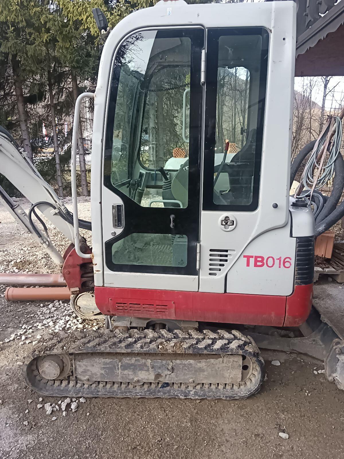 Verkaufe einen Takeuchi tb 016 Baujahr 2012 mit ca 3500 Std. Stunden können sich noch etwas ändern,da ich noch zeitweise Kleinigkeiten machen muss. Relativ guter Zustand,normales Spiel an den Bolzen, technisch Top, Kabine mit einigen Dellen. Powertilt mit 3 Löffel dabei. 1 m Schild,60 und 30 er Geel Grablöffel Zustellung möglich