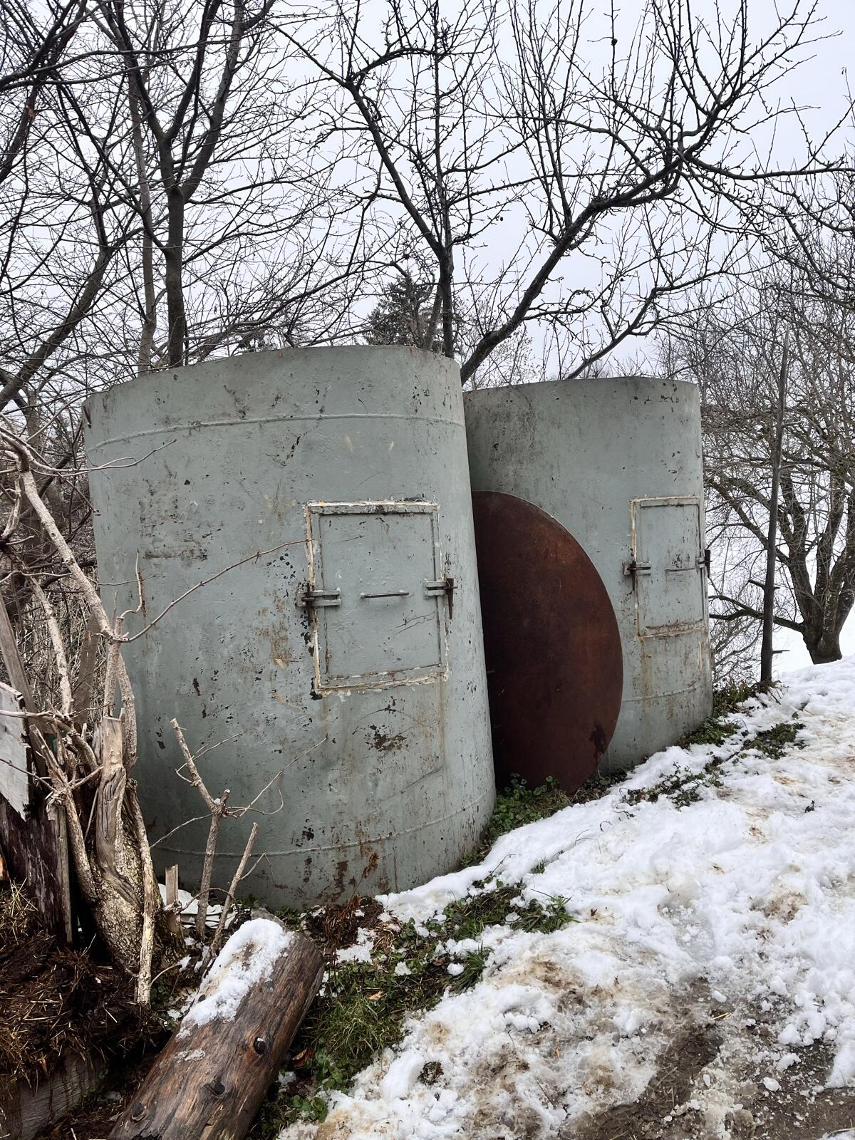 Verkaufe zwei robuste Hochsilos aus Stahl in solider Eigenbauweise. Ideal für kleine Landwirtschaft. Mit Bodenabfluss, Entnahmetür (47 × 60 cm), Tür wird mit Silikon abgedichtet und mit Keilen verschlossen, oben jeweils zwei Öffnungen für Transport sowie Halterungen zur Montage von Wänden beim Befüllen. Zwei massive Deckel aus Eisen vorhanden, um den Inhalt niederzuschweren. Maße je Silo: Dm. 160 cm, Höhe: 233 cm. Die Silos sind stabil gebaut und sofort einsatzbereit. Preis: € 250,- pro Stk. Passender Häcksler zum Befüllen steht ebenfalls zum Verkauf.