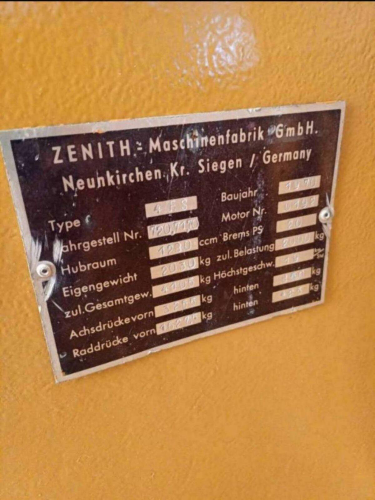 Zenith Hubgerät, Bj. 1970, Eigengewicht 2.050 kg, hinterradgelenkt. Läuft ohne Probleme, wie auch das Starten und Fahren, Kuppeln usw., Bremse zieht eventuell leicht einseitig. Im kalten Zustand, beim schweren Heben, heult die Hydraulik, denke so auch im warmen Zustand. Es ist ein Parallelhubgerät. Was neu gemacht wurde: Dieselleitungen, Diesel-Leitungsfilter, Dieseltank gereinigt, neues Zündschloss mit Reserveschlüssel, neu gestrichen mit originaler Caterpillar-Farbe, natürlich mit Grundierung und Härter gearbeitet, 1 x neuen LED-Arbeitsscheinwerfer montiert H + V, Grammer Sitz gebraucht. Wird als Bastlerfahrzeug verkauft. Dem Alter entsprechend.