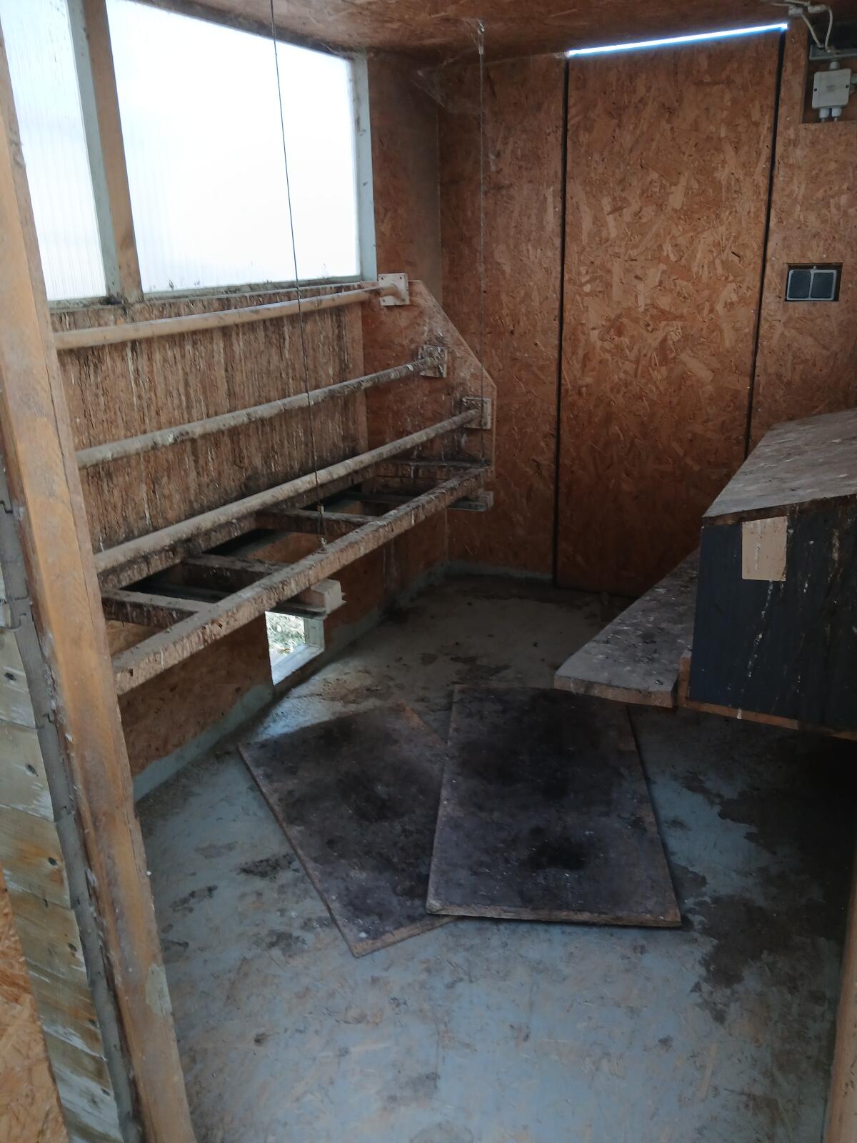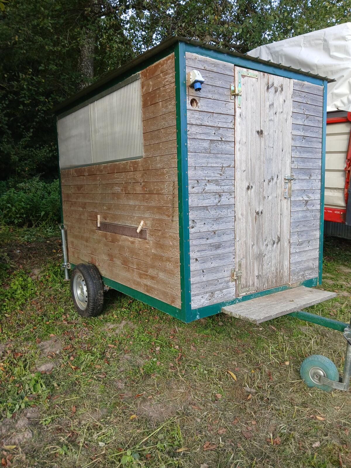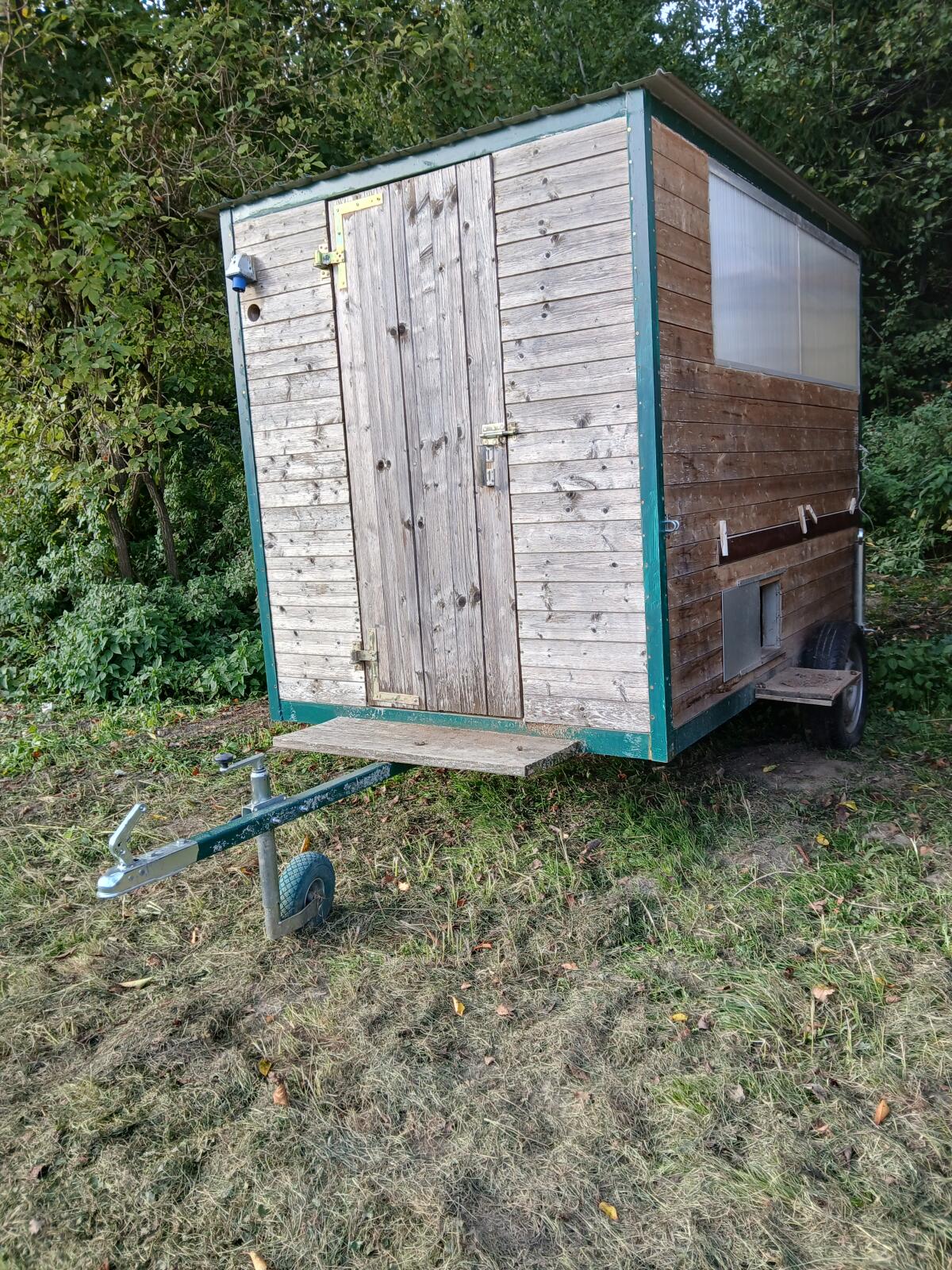 Hühnerstall Eigenbau, nicht für den Straßenverkehr zugelassen. Wurde mit 20 Hühnern benutzt, Stromanschluss, LED-Beleuchtung für Zeitschaltuhr.
