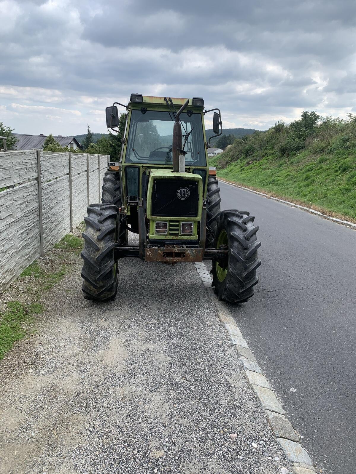 Klopfgeräusche. Springt an, jedoch klopft er. 1 dw, 1 ew, druckloser Rücklauf. Wurde sofort abgestellt und geschleppt. Seitenteile alle vorhanden. Optimaler Forsttraktor. Sehr wendig.