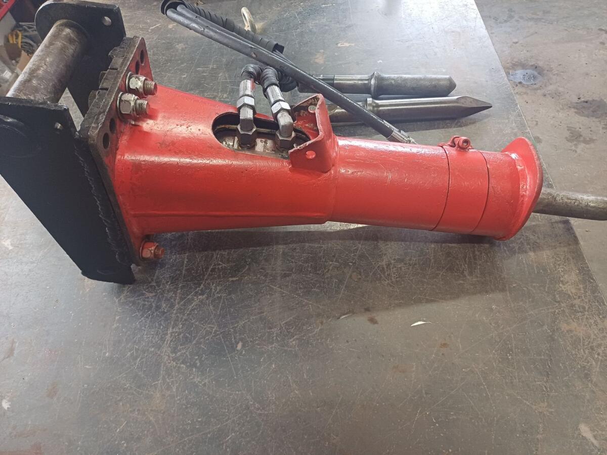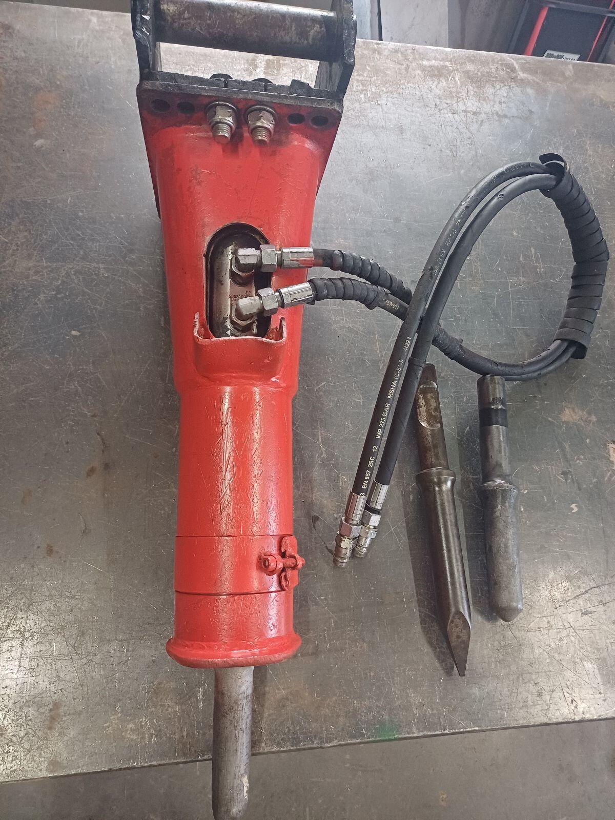 Biete hier meinen Hydraulikhammer Montabert SC08 an, MS03 Aufnahme, inkl. 2 Ersatzmeißel. Technische Daten: Einsatzgewicht Hammer: 90 kg, Öldarf: 15 – 30 l/min, Schlagfrequenz: 1.600 bpm, Betriebsdruck (max.): 120 bar, Dm.: 45 mm.