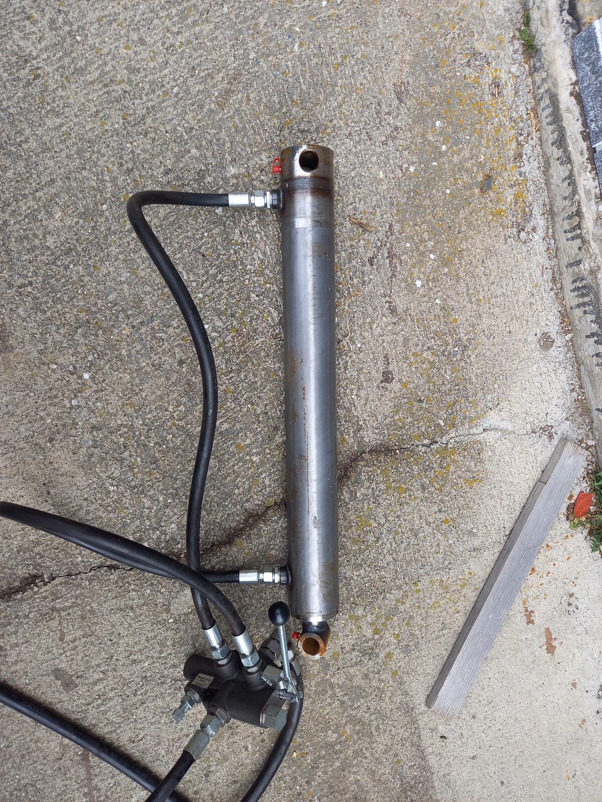 Hydraulikzylinder der Marke Rosi-Tech zu verkaufen. Zylinderstange hat 40mm Durchmesser und 600 mm Hub. Der Bohrungsdurchmesser für die Befestigung sind 30mm. Ein Doppelwirkendes Steuerventil und die Schläuche für den Traktorbetrieb sind dabei. Wäre für einen Holzspalter gedacht gewesen, aber mein Traktor ist zu schwach. Nur Selbstabholung. Da es sich um ein Gebrauchtes Teil handelt gibt es keine Gewährleistung.