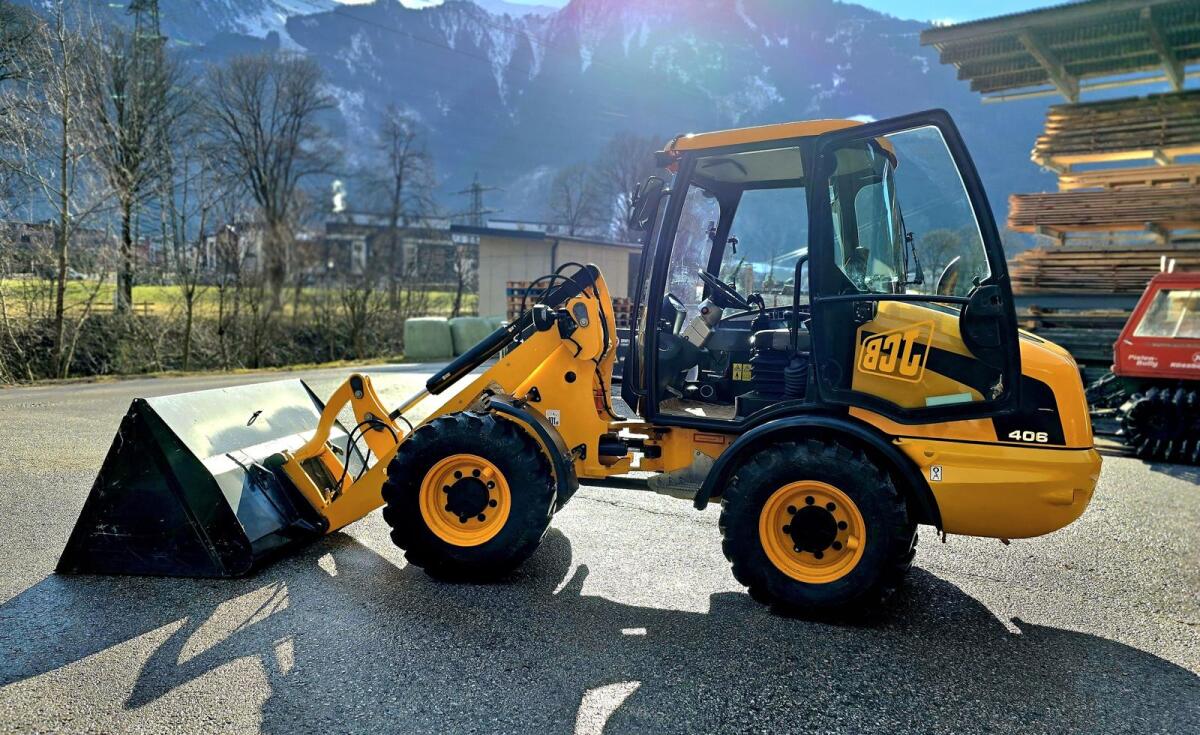 JCB 406, super Zustand, nur 765 Bstd., mit Schaufel und nie gebrauchten Schneeketten, Betriebsgewicht: 5.080 kg.