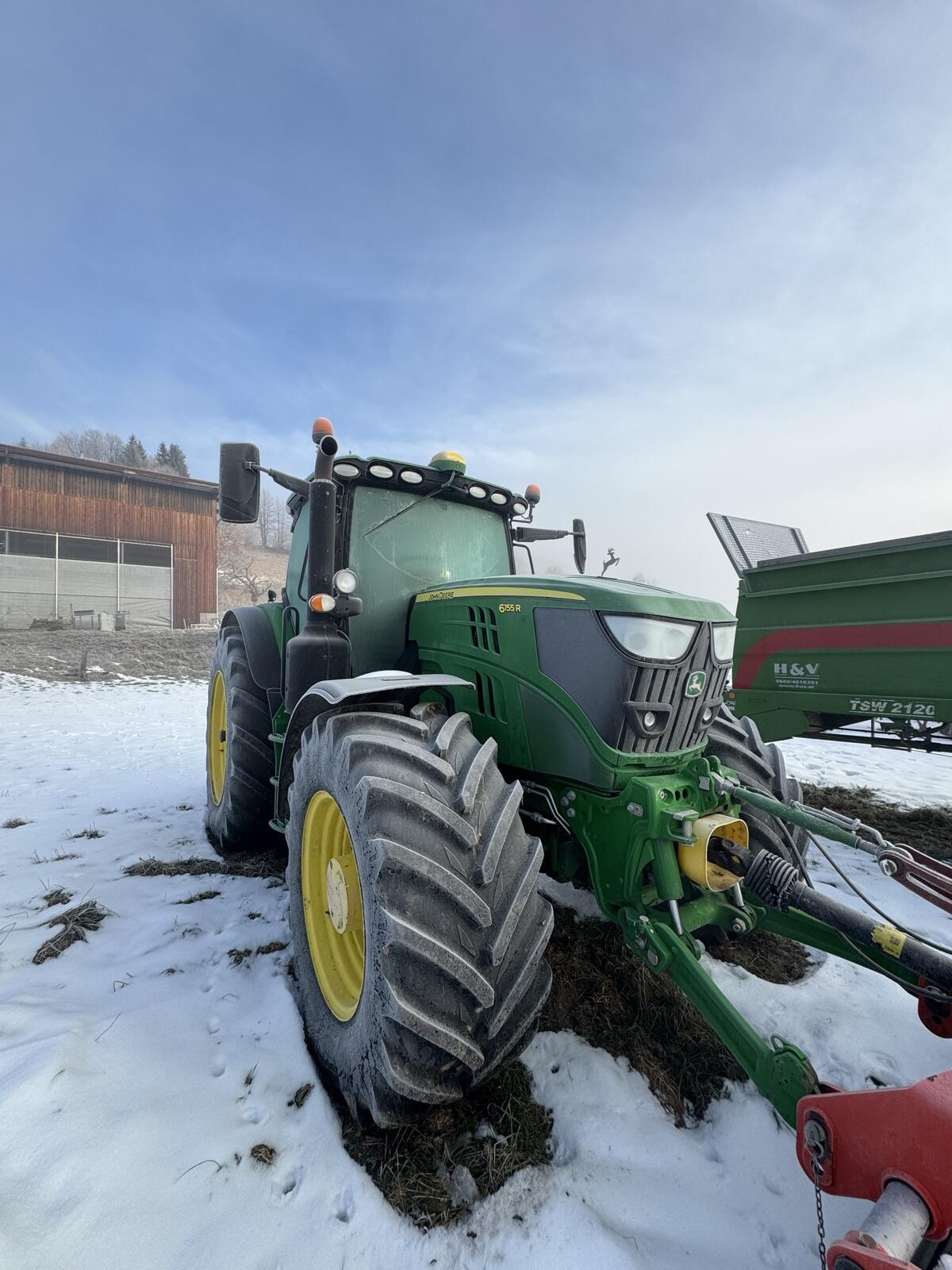 Verkauft wird ein John Deere 6155 R Ultimate, Bj. 2021, 836 Bstd., John Deere Star Fire inkl., Lederausstattung, Frontzapfwelle, 5x dw Stg., ISOBUS, 50 km/h, Automatikgetriebe, VOLLAUSSTATTUNG.