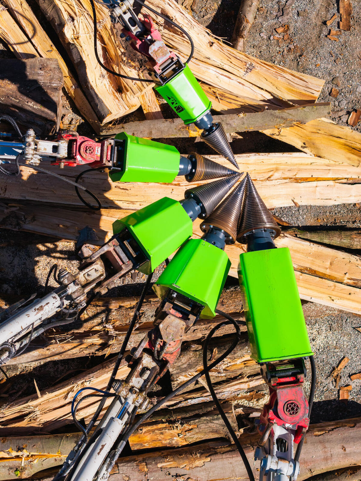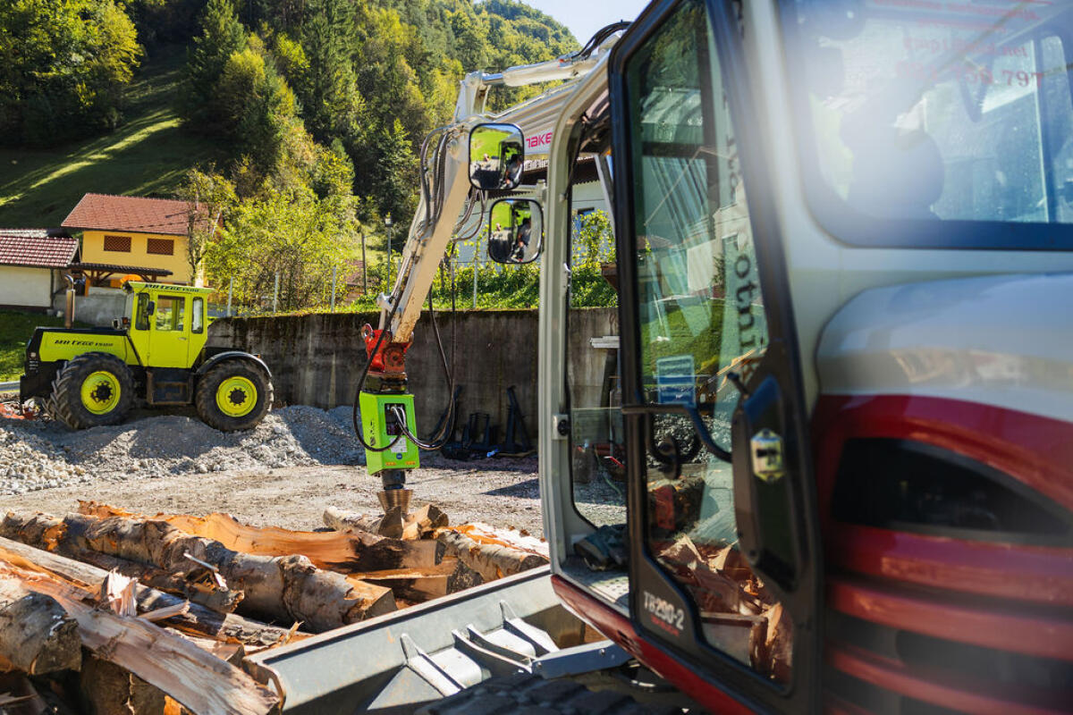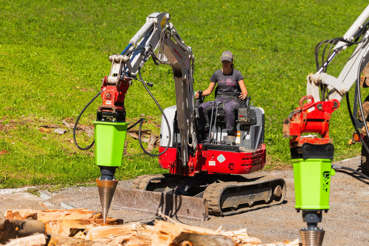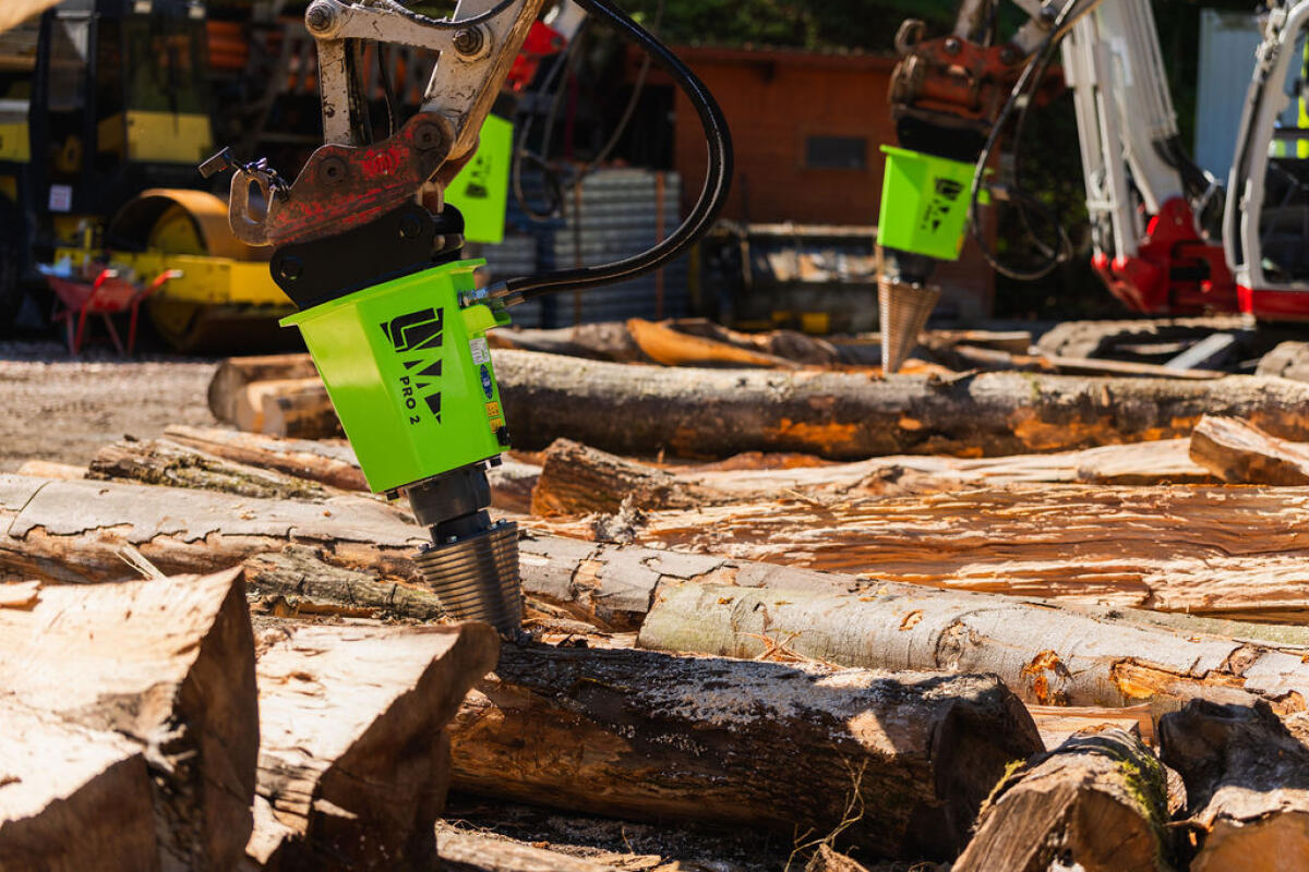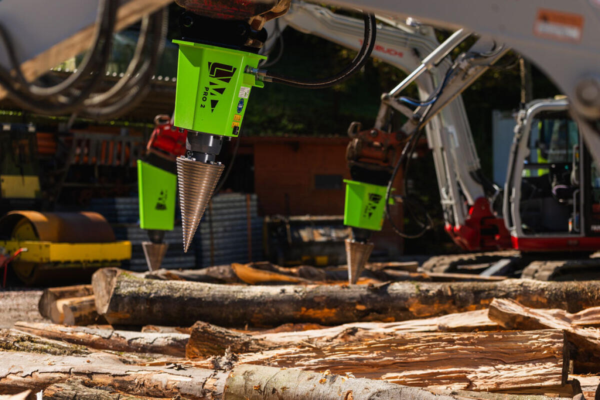 Kegelspalter Modell PRO, eine neue Linie für den professionellen Kegelspalter-Einsatz. Fünf neue Modelle: ECO, PRO 1, PRO 2, PRO 3, PRO 4R mit Planetengetriebe, mit Konsole für Rückewagen, ideal, um lange Stämme zu spalten. Lieferbar für Bagger, Frontlader und Rückewagen bis Stammdm. 1,5 m. Top-Qualität, die Konkurrenz schafft das nicht, Ölmotoren 500 cm³ 30 kW, 800 cm³ 45 kW, 1.100 cm³ 65 kW. Leistung von 2.250, 2.750, 3.750 Nm, 5.500. Kegel mit Flansch und 6 Schrauben montiert. Kegeldm. 200 x 400 mm, 230 x 460 mm, 260 x 500, 300 x 550 mm, 350 x 550.