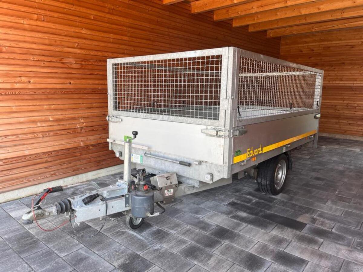 Verkauft wird ein Anhänger der Marke Eduard als Heckkipper mit Laubgitteraufsatz sowie Rampenschacht mit zwei Auffahrrampen. 1,5 t zulässige Gesamtmasse, Maße Ladefläche: 256x150x90, 100 km/h Zulassung. Weitere Daten sind dem Fahrzeugschein zu entnehmen. Kippen durch Handpumpe oder mit Akkuschrauber (Pumpfast von BastIng). Reifenprofil noch sehr gut. Gekauft im Jahr 2022. TÜV bis Juli 2025. Kann nach Vereinbarung vor Übergabe neu gemacht werden. Stand nie im Freien. Wurde ausschließlich für Gartenabfälle benutzt. Verkauf aufgrund Neuanschaffung.