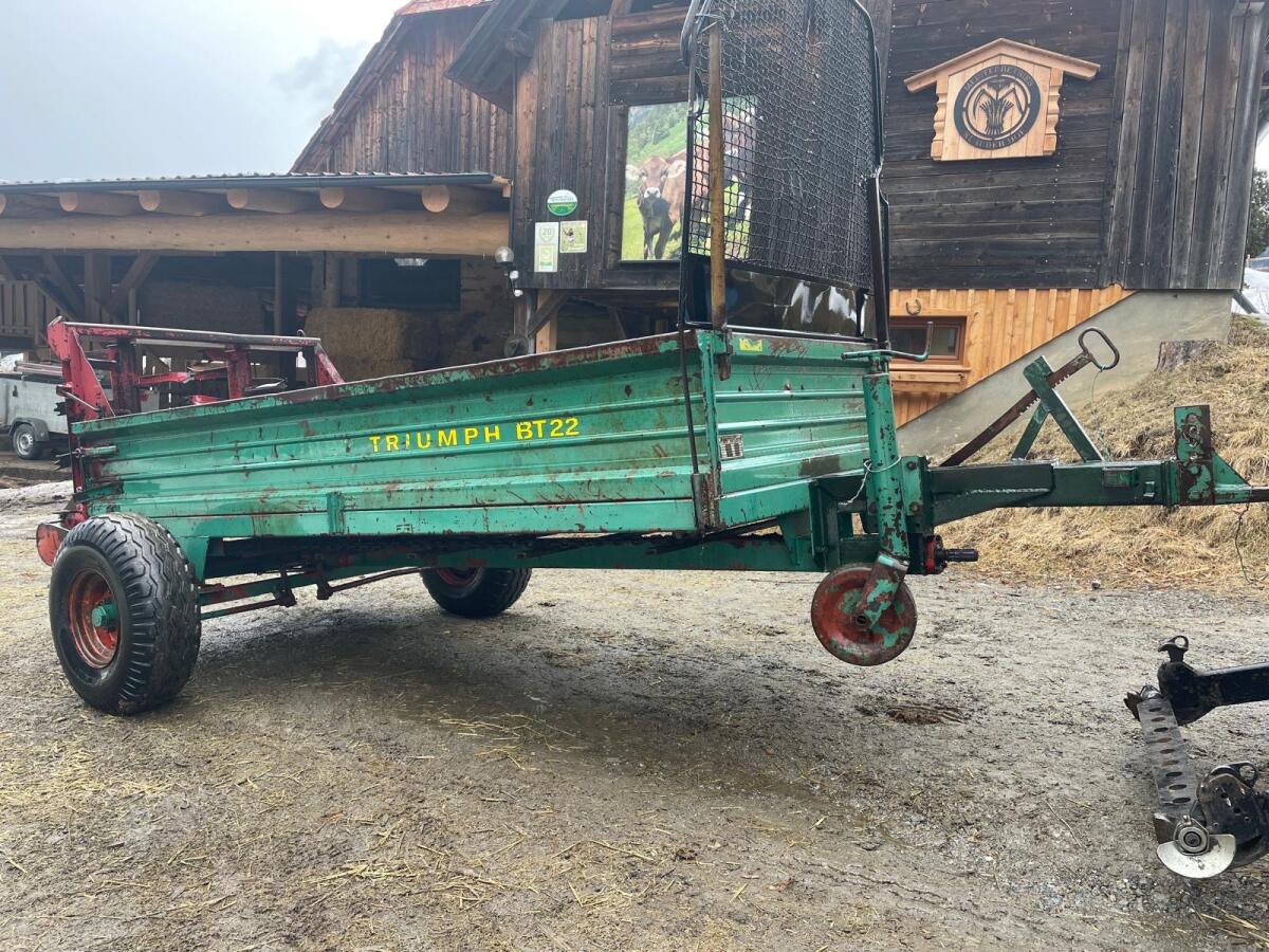 Unser Kirchner Triumph BT22 ist ein kompakter Bergmistreuer, ideal für den Einsatz im Hang. Breites Streubild dank stehender Walzen. Er wird verkauft, wegen Umstieg auf einen größeren. Nutzlast: 2,5 Tonnen Volumen: ca. 4 m^3 Zustellung mittels PKW Anhänger möglich. Preis Vb.