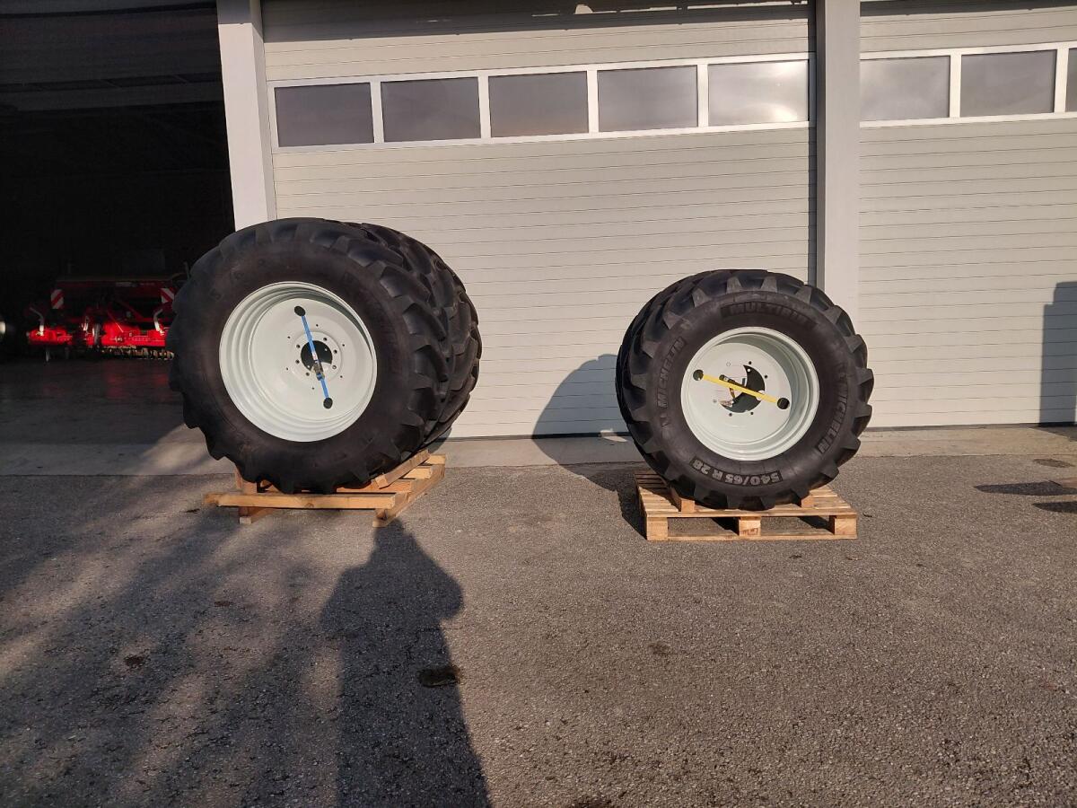 Michelin MultiBib Kompletträder 540/65 R 28 mit 8-Loch Fixfelgen (Innenlochkreis-Dm.: 290 mm, Bolzenabstand-Dm.: 330 mm) und 650/65 R 38 mit 8-Loch Fixfelgen (Innenlochkreis-Dm.: 221 mm, Bolzenabstand-Dm.: 275 mm), ca. 300 Bstd. passend zu Steyr, New Holland und Case. Neupreis war € 11.000,-.