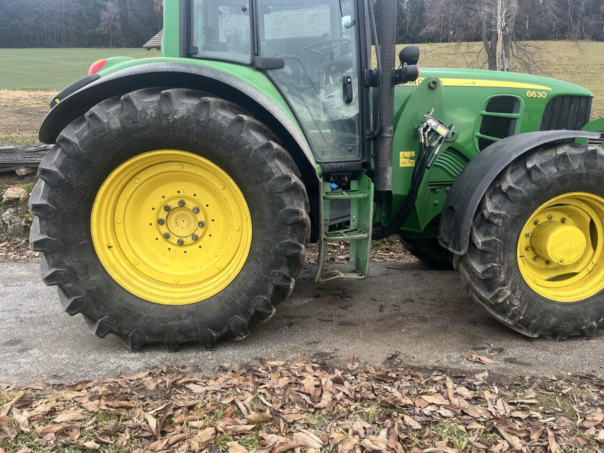 Kompletträder für John Deere 6630. Hinten: 650/65R38, ca. 90% Profil, 8 Loch, 18l J/07, Spur: 180 cm, Außenbreite: 250 cm. Vorne: 540/65R28, ca. 30-35% Profil, 10 Loch, Spur: 190 cm, Außenbreite: 245 cm.