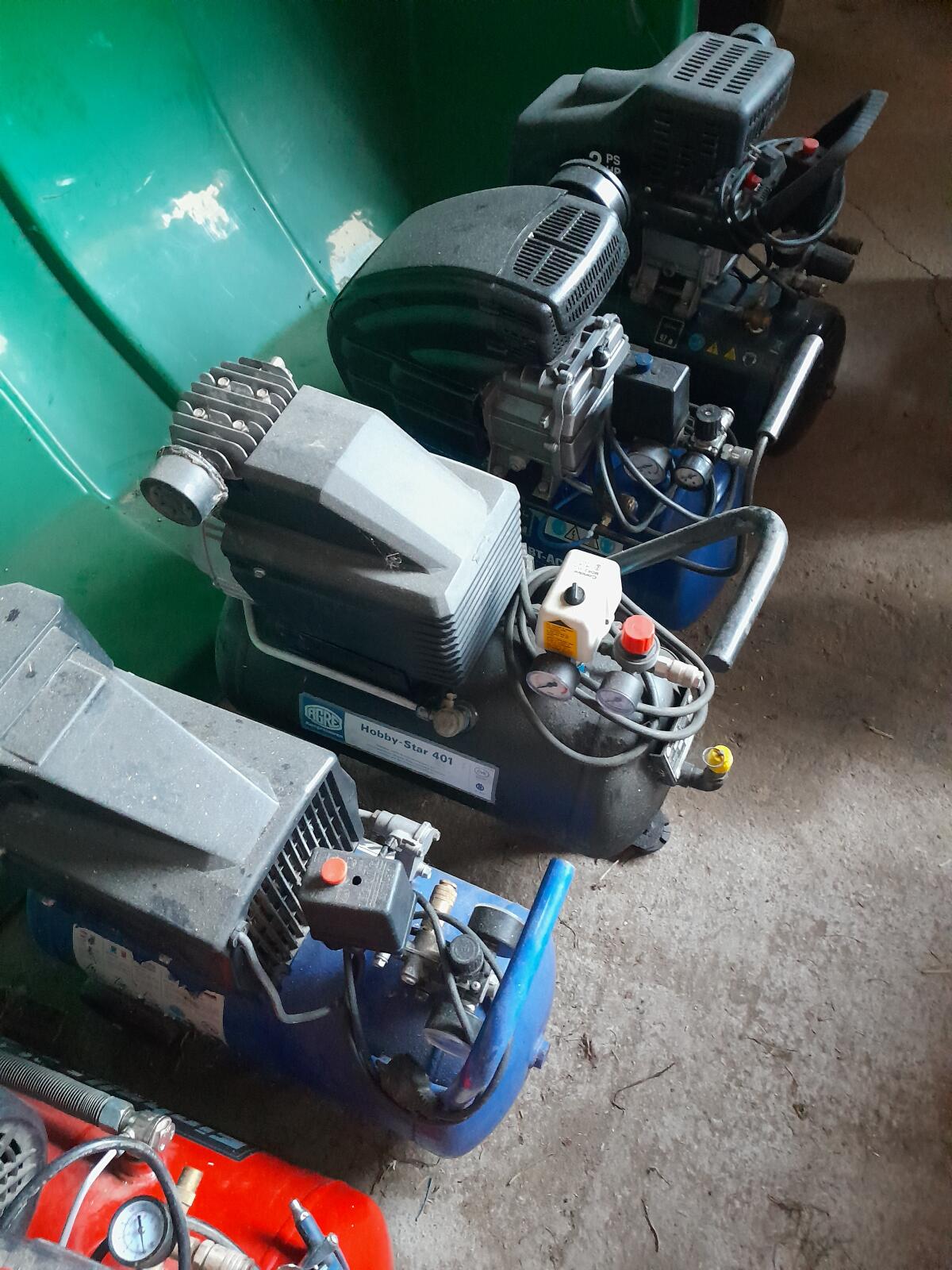 Verschiedene gebrauchte Kompressoren in gutem Zustand, 230 V und 380 V, Kessel 24 l, Kessel 50 l.