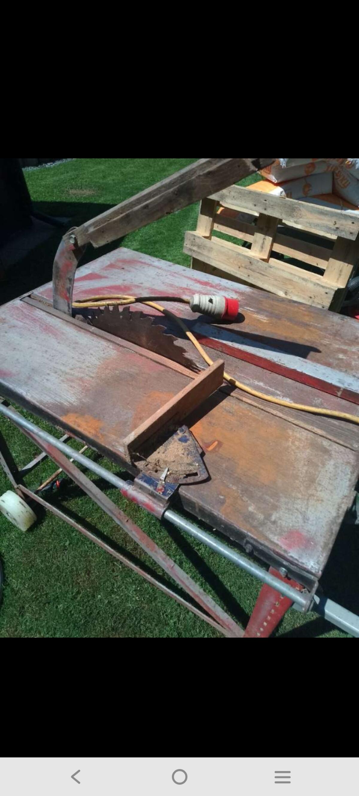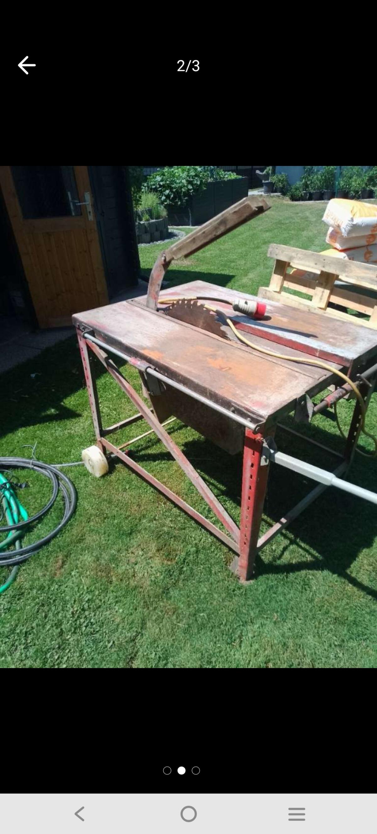 Säge funktioniert, läuft mit Starkstrom, Räder wurden neu rauf gemacht.