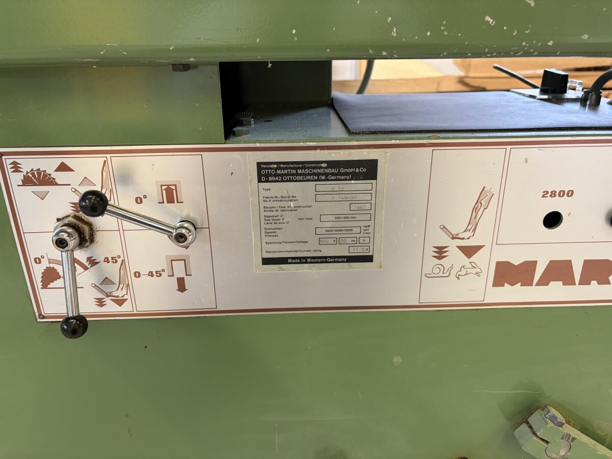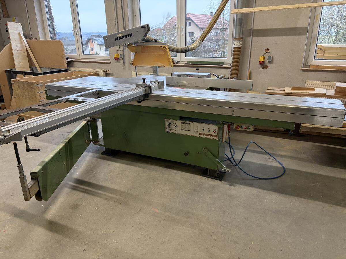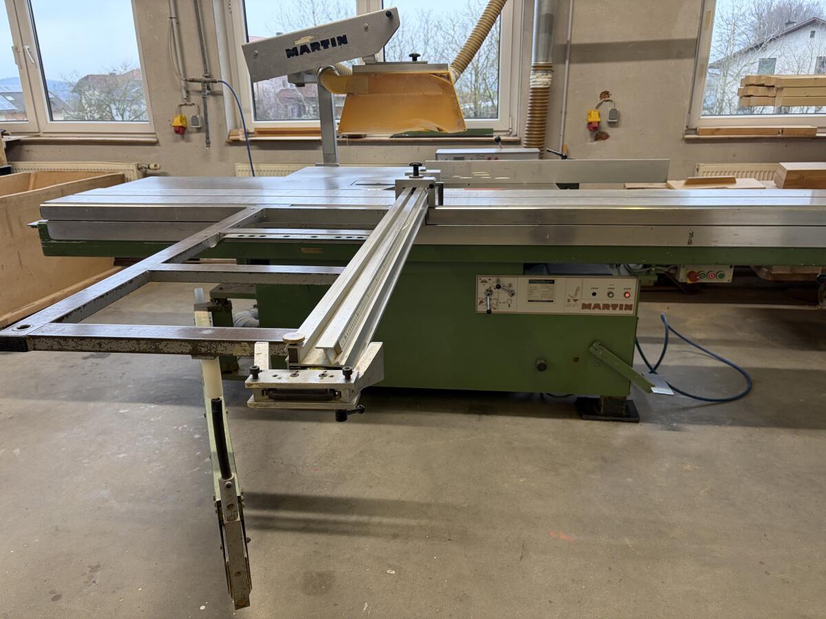 Zum Verkauf steht eine Martin T72 Formatkreissäge. Bj. 1987, Schiebetischlänge 3.300 mm, Parallelanschlag bis 1.070 mm verstellbar und wegklappbar.