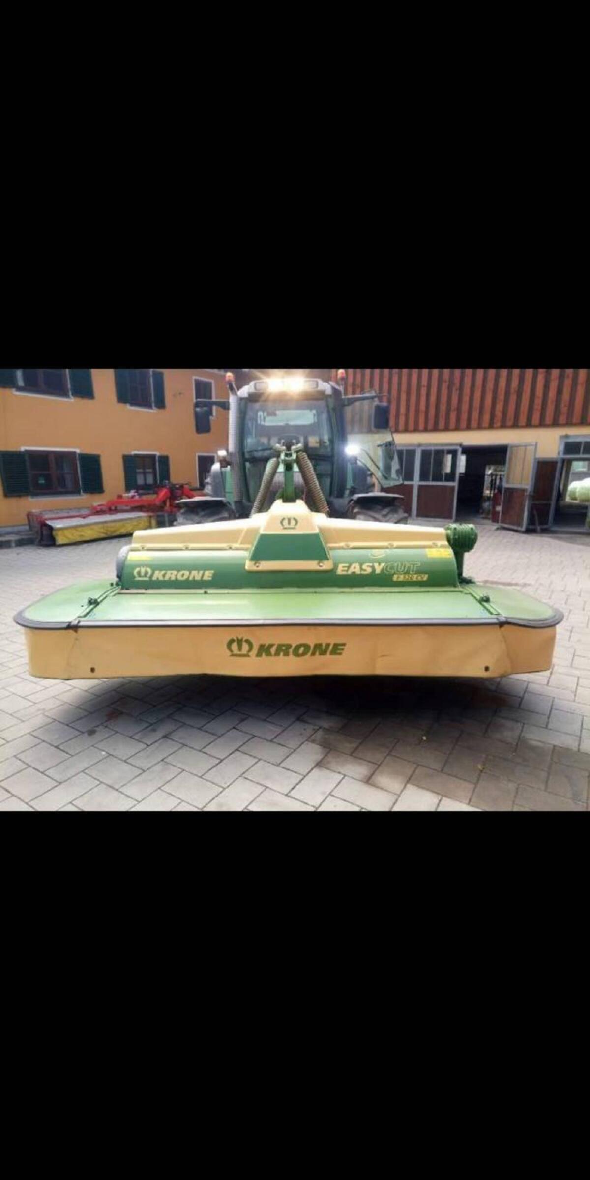 Krone Frontmäher mit Aufbereiter. Hydr. Seitenschutz, hydr. Entlastung mit Gelenkwelle. SBG.