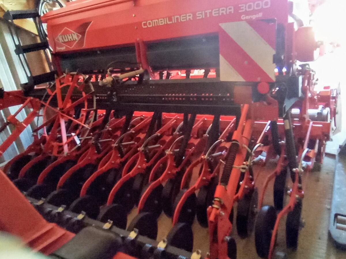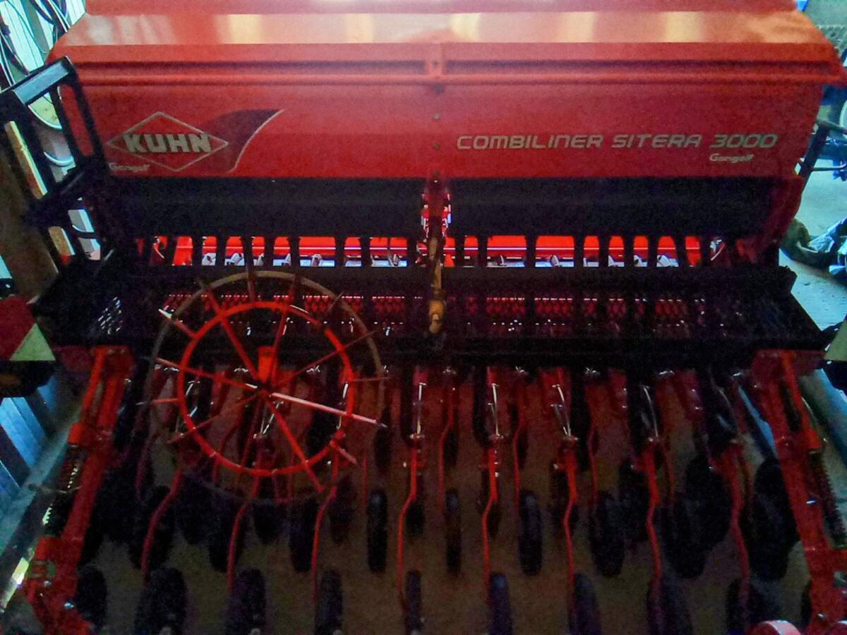 Kuhn Kreiselegge HRB303 mit Sitera 3000 Sämaschine, Scheibenschar mit 20 Tüten, 800 l Behälter, Fahrgassenschaltung und Striegel. Top Zustand.