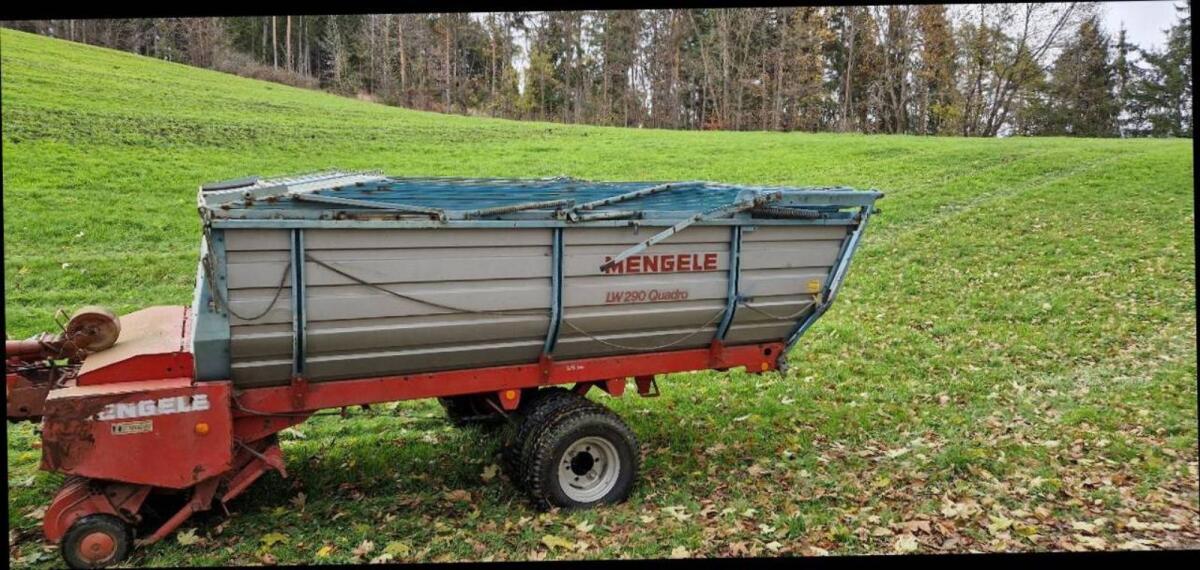 Verkaufe Mengele Kurzschnittladewagen KW290 Quadro, 25 Messer. Trockenfutteraufbau, Knickdeichsel, hydr. Kratzboden, hydr. Bremse, Zwillingsbereifung.