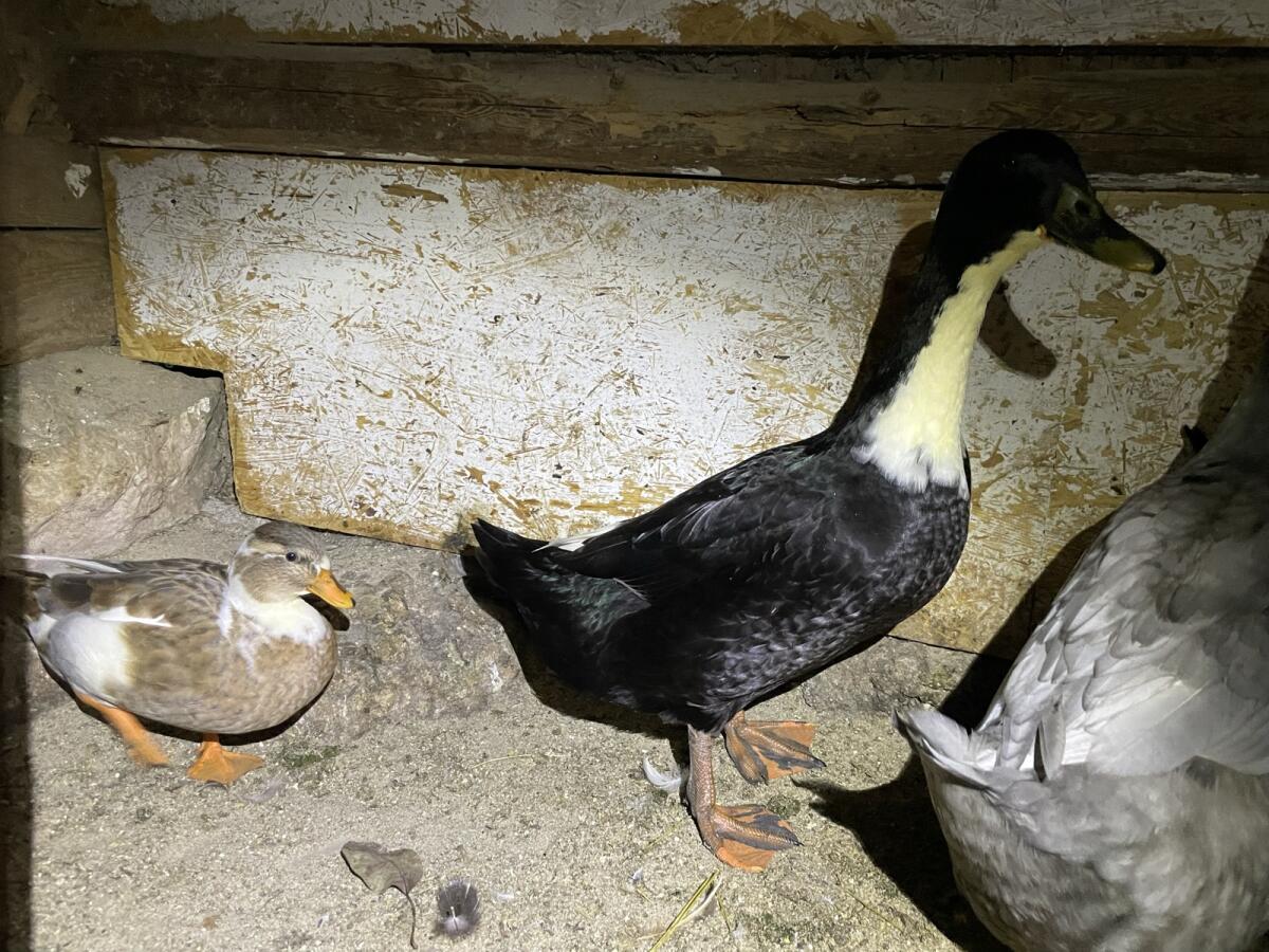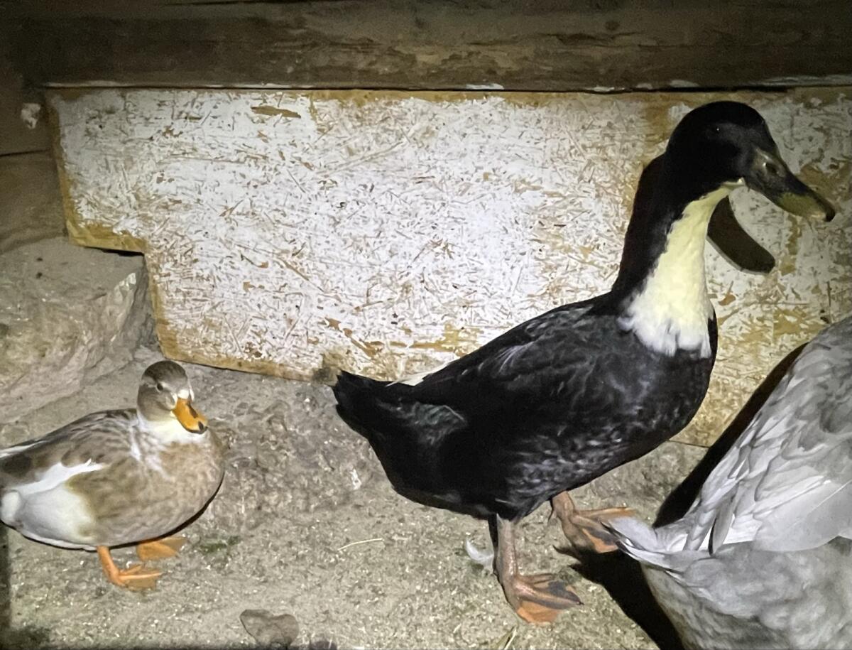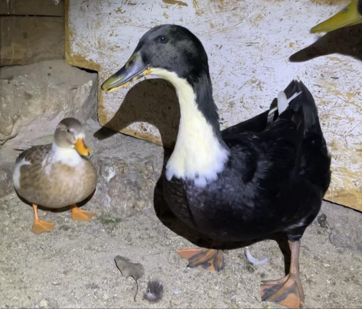 Ungleiches Paar ist motiviert, sich in neuer Umgebung um Schnecken zu kümmern. Die Dame von beiden ist die große Lady, eine Mischung aus Laufente und Pommernente, der zutrauliche Erpel dazu ein Zwergenten-Herr, reinrassig. Der Preis bezieht sich auf beide zusammen. Platz vor Preis.