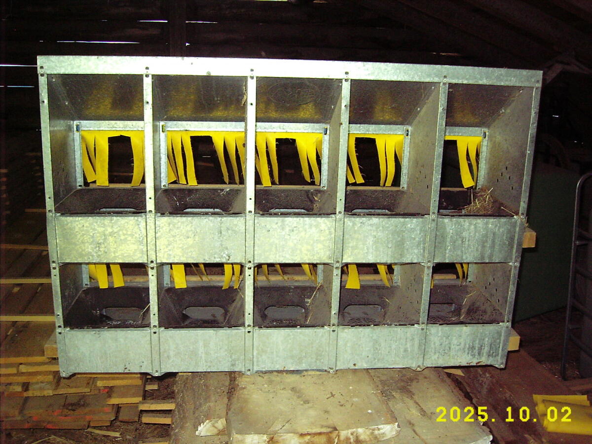 Biete Legenest mit 10 Abteilen aus verzinktem Stahlblech, mit herausnehmbaren Kunststoffeinsätzen, für Wandmontage, Abrollfunktion, Eierfach mit Deckel.