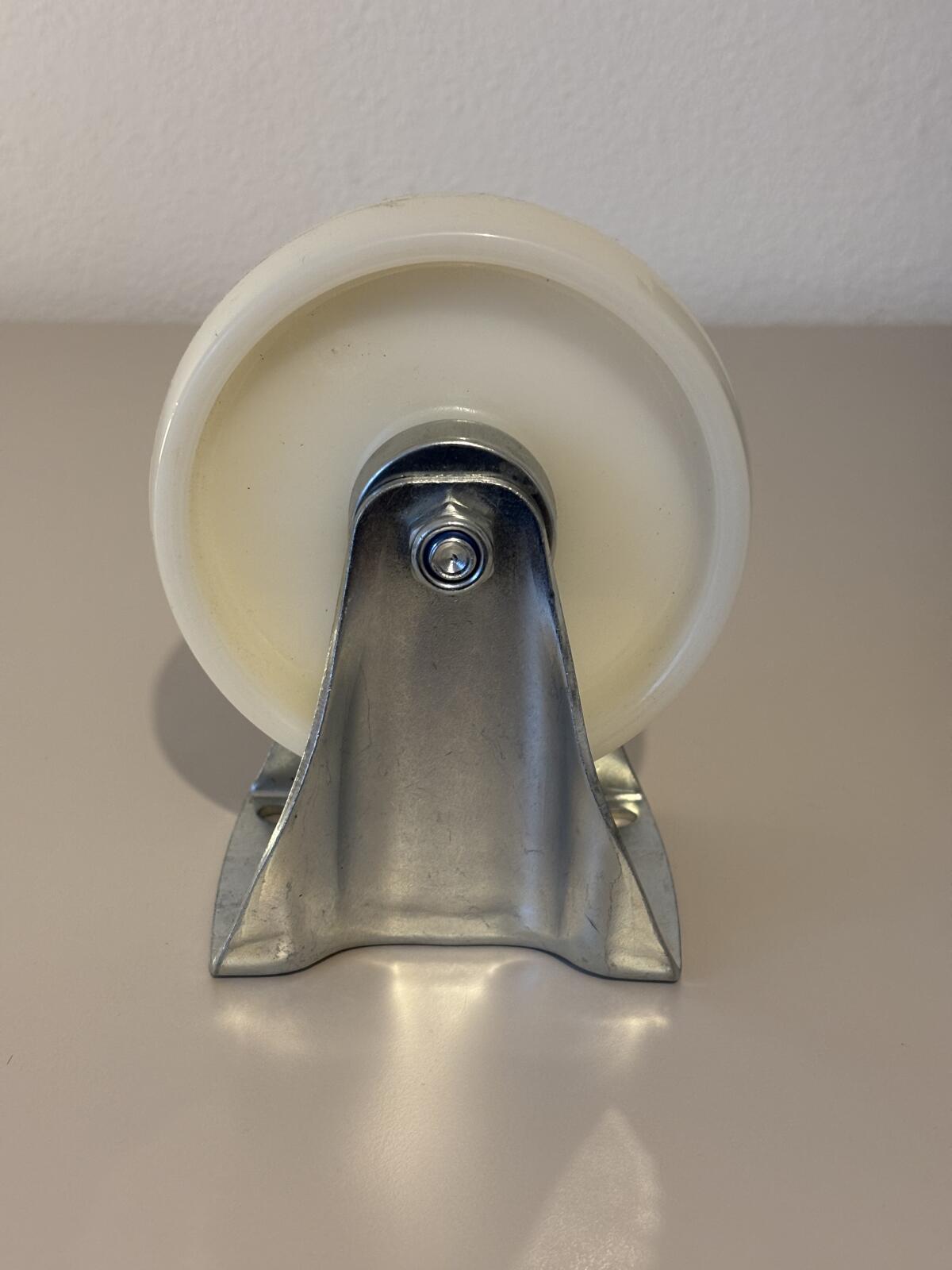 Lenk- und Bockrolle aus Polyamid, Raddurchmesser 125 mm, Gabel und Befestigungsplatte aus 3 mm, mit Nadellager und Fadenschutz, Gesamthöhe 155 mm, Tragkraft 250 kg.