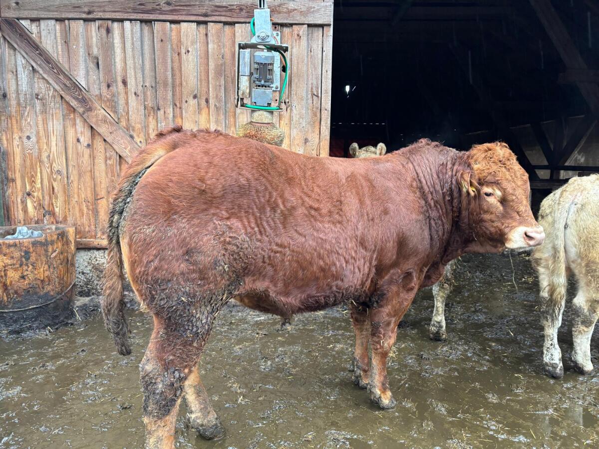 Reinrassiger Limousin-Stier, 23 Monate hornlos inkl. Zuchtbescheinigung, ruhiger Charakter, gute Bemuskelung, ca. 750 kg, Betriebsauflösung. Preis auf Anfrage.