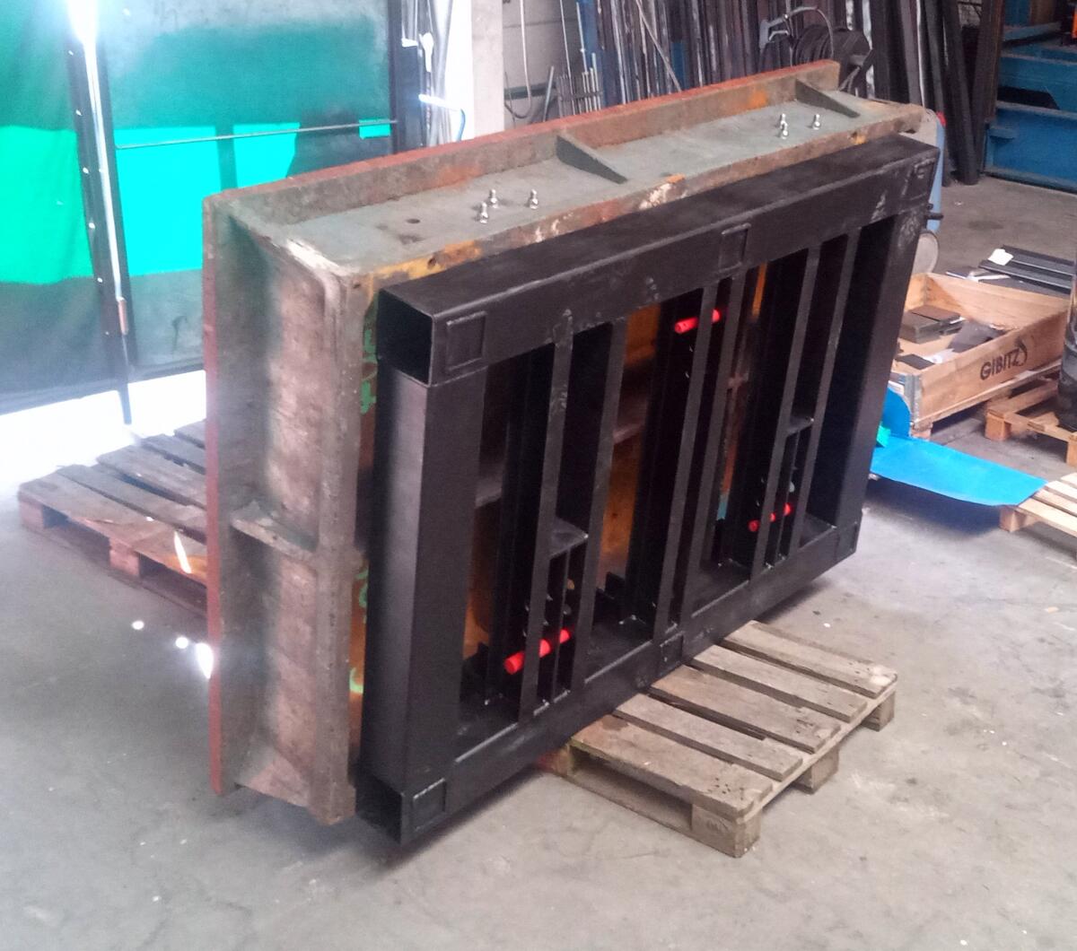 222x150x50 cm, Platte ist 5 cm dick, Tragrahmen aus 160er Formrohr, Gewicht 2.307 kg, Ausbetonieren gut möglich, dann mindestens 1.500 kg schwerer, KAT 2 u. 3 Aufnahme, Zustellung möglich.