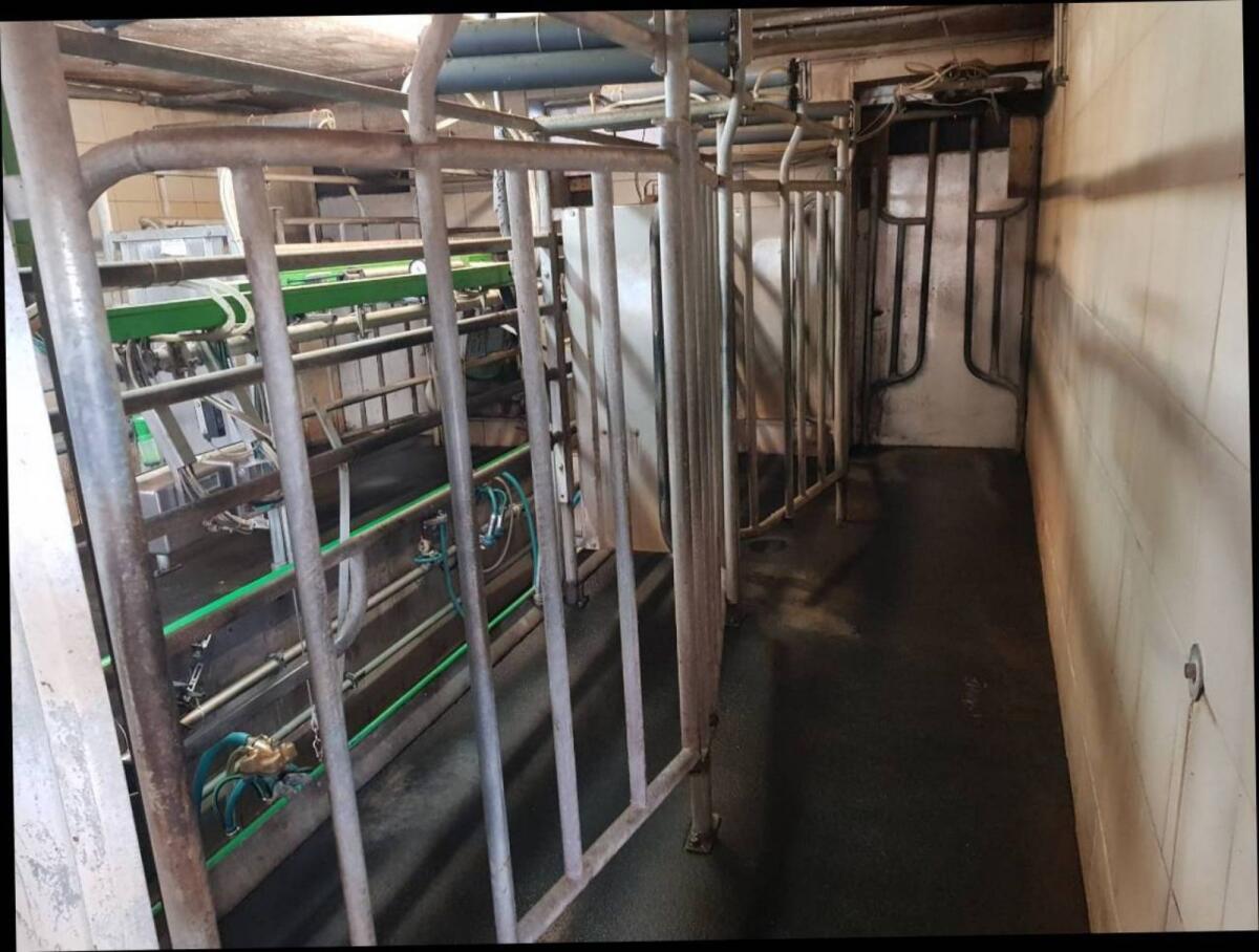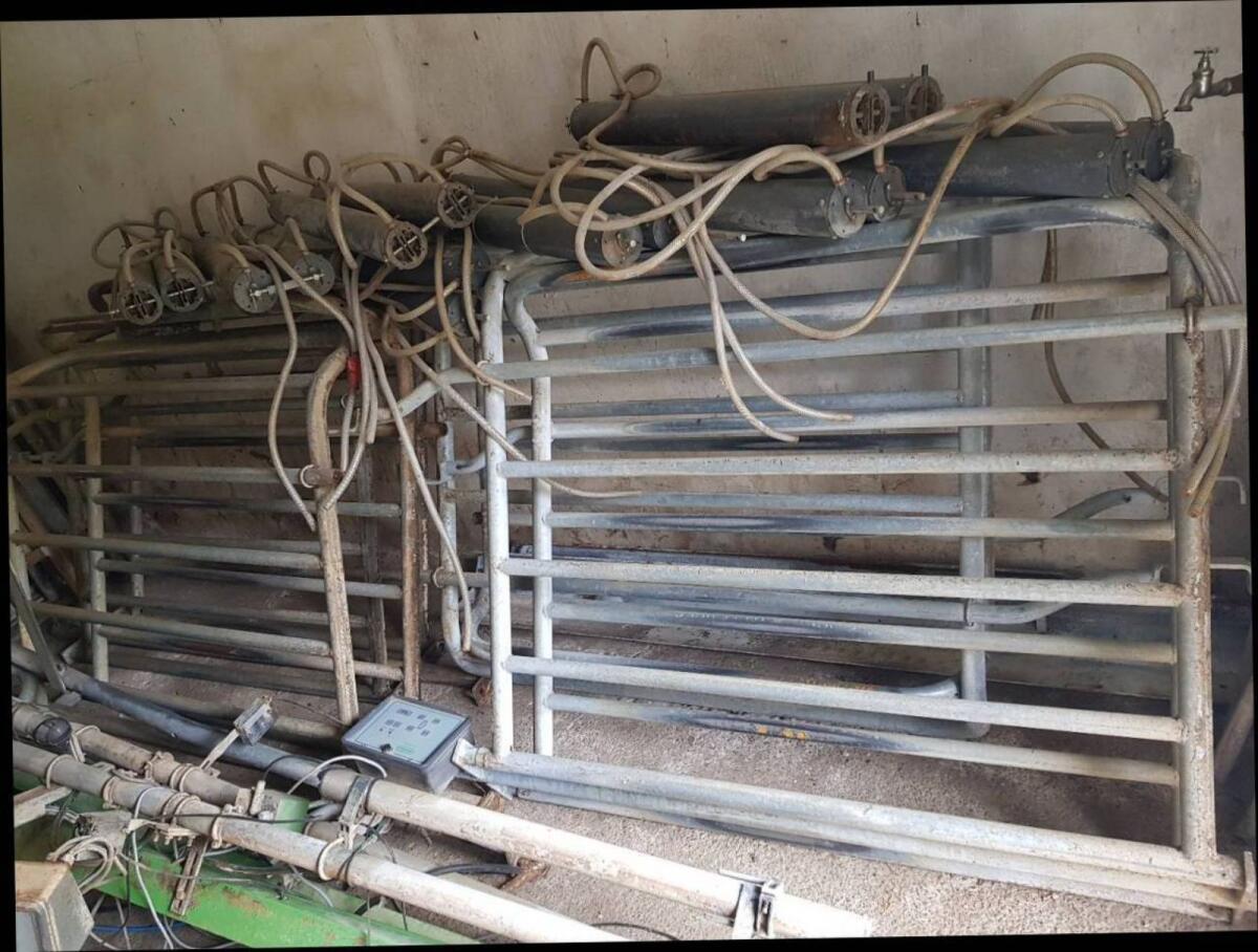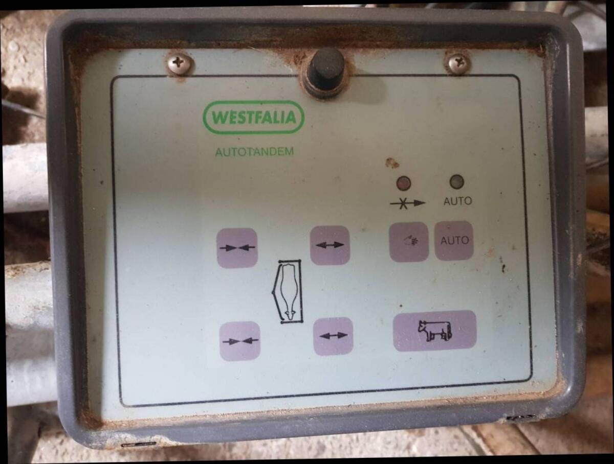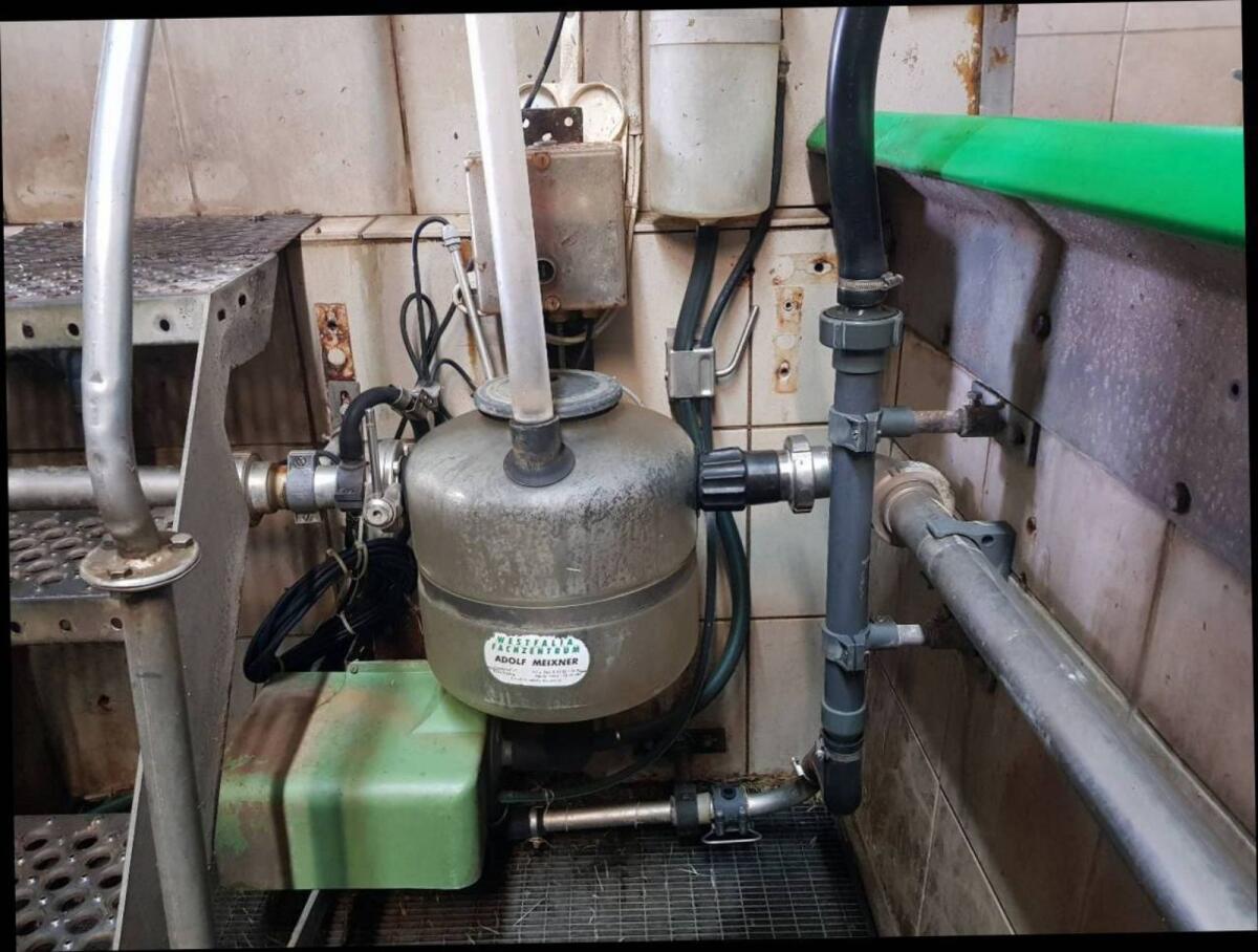 Tandemmelkstand komplett, mit allen Pumpen, Motoren und Steuerungen, betriebsbereit. Für 4 Melkplätze, mit Waschautomat. Automatische Eintriebs- und Austriebssteuerung.