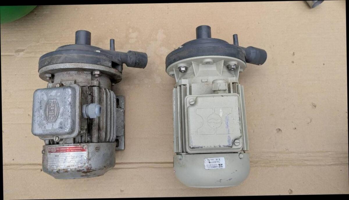 Milchpumpe weiß, neu, 1 Jahr gelaufen, € 700,-. Milchpumpe grau, neu gewickelt, € 550,-. Beide Motoren je 0,55 kW.