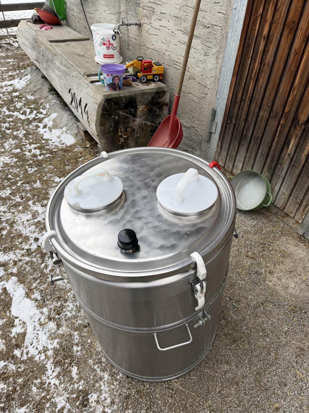 Verkaufe 200 l Milchtank und Wagerl dazu, wegen Anschaffung eines größeren Tanks. War bis 02.01.2026 in Gebrauch. Preis Vhb.