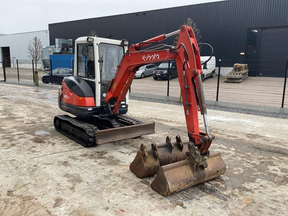 Kubota KX71-3, Bj. 2007, 20,5 kW, 3.932 Bstd., 4 Zylinder, Diesel, Betriebsgewicht 2.800 kg, Löffelgröße B 1.220 mm, Raupenbreite 300 mm, Gesamtabmessung L 5.000 mm, Gesamtabmessung B 1.500 mm, Gesamtabmessung H 2.300 mm, Schaufel 2 750 mm, Schaufel 3 300 mm. Es weist keinerlei Mängel auf, ist in einwandfreiem Zustand und sofort einsatzbereit.
