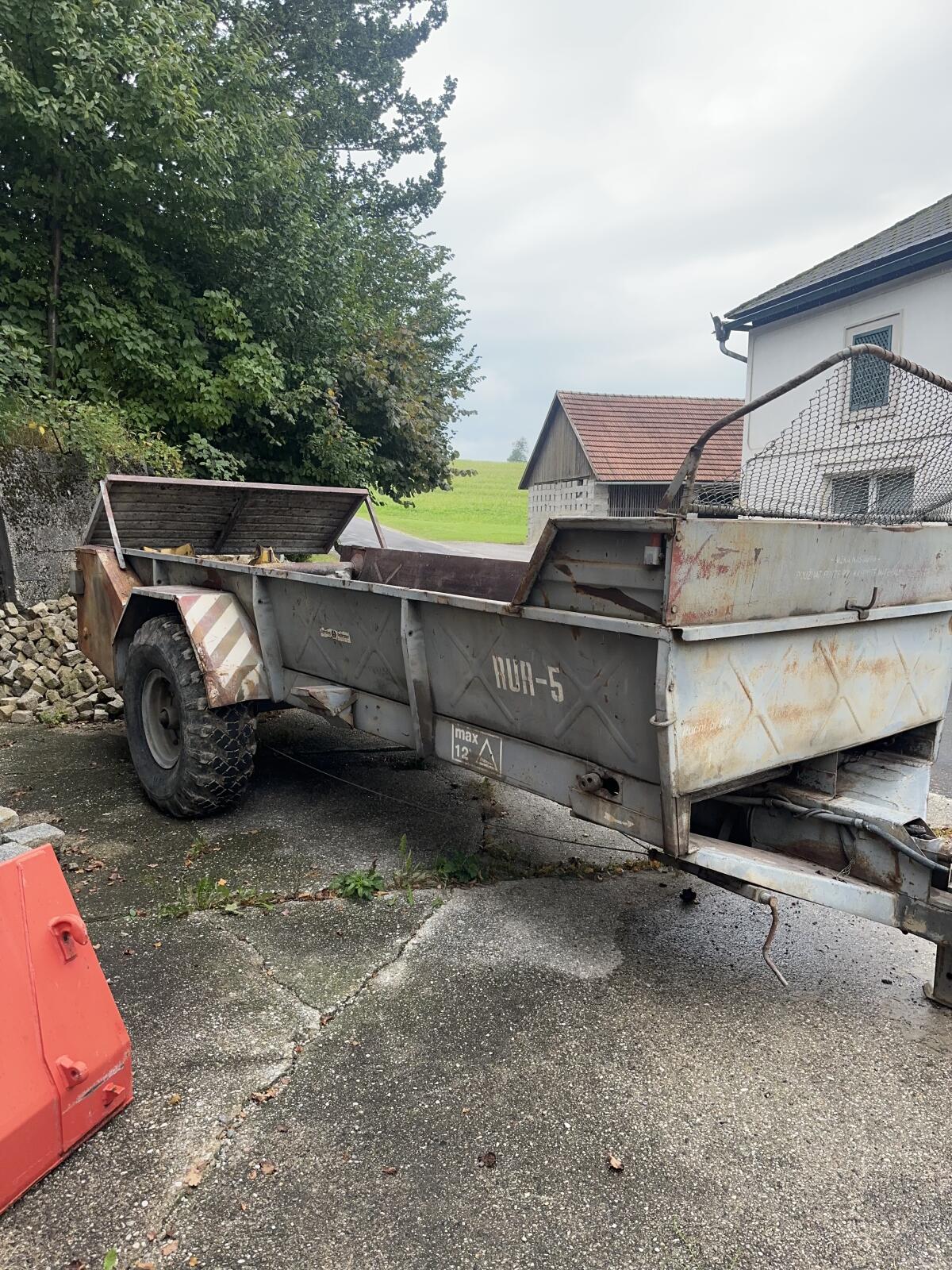 Zum Verkauf steht ein Miststreuer des Typs RUA-5, Bauart aus Osteuropa. Der Streuer ist funktionstüchtig, robust gebaut und sofort einsatzbereit. Technische Daten, Ausstattung: Nutzlast: ca. 5 t, Ladevolumen: ca. 5–6 m³ (je nach Material und Befüllung), Antrieb über Zapfwelle (PTO), Einleiter-Druckluftbremsanlage vorhanden, Bereifung: Landwirtschaftsreifen, noch brauchbar, aber bereits älter, Mechanisch solider Zustand, stabile Konstruktion. Hinweise: Beleuchtung sollte überprüft bzw. erneuert werden, Bremsanlage funktioniert, könnte aber einmal nachgesehen werden, Optisch gebraucht, aber technisch einsatzfähig. Preisvorstellung: € 1.200,- VB. Standort: Stadt Haag, NÖ.