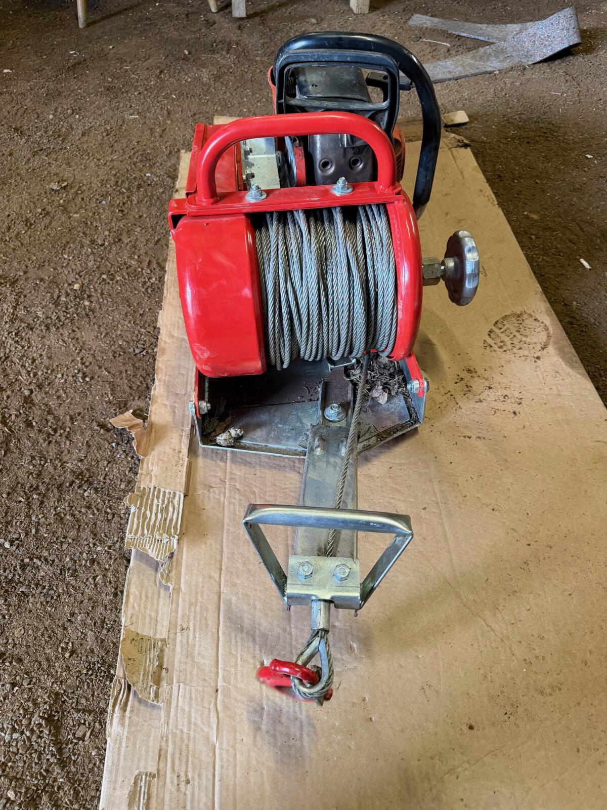 Verkauft wird eine Kleinseilwinde MultiVIK 1.000 mit Seilführung (Zugkraft 1.000 kg, umgelenkt 2.000 kg). Angetrieben wird die Seilwinde von einer robusten Motorsäge - Dolmar PS-6100. Stahlseil 6,5 mm, 80 lfm verzinkt mit Haken HS 5/6. Die Seilwinde ist komplett NEU, mit Rechnung.