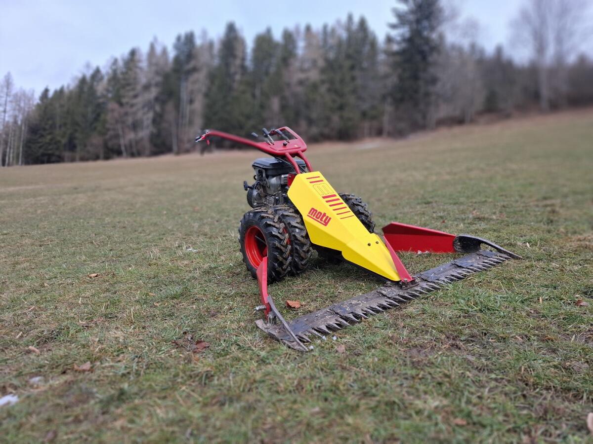 Einsatzbereiter Motormäher, 9 PS, 1,60 cm Schnittbreite. Mit Lenkung, Ersatzmesser.